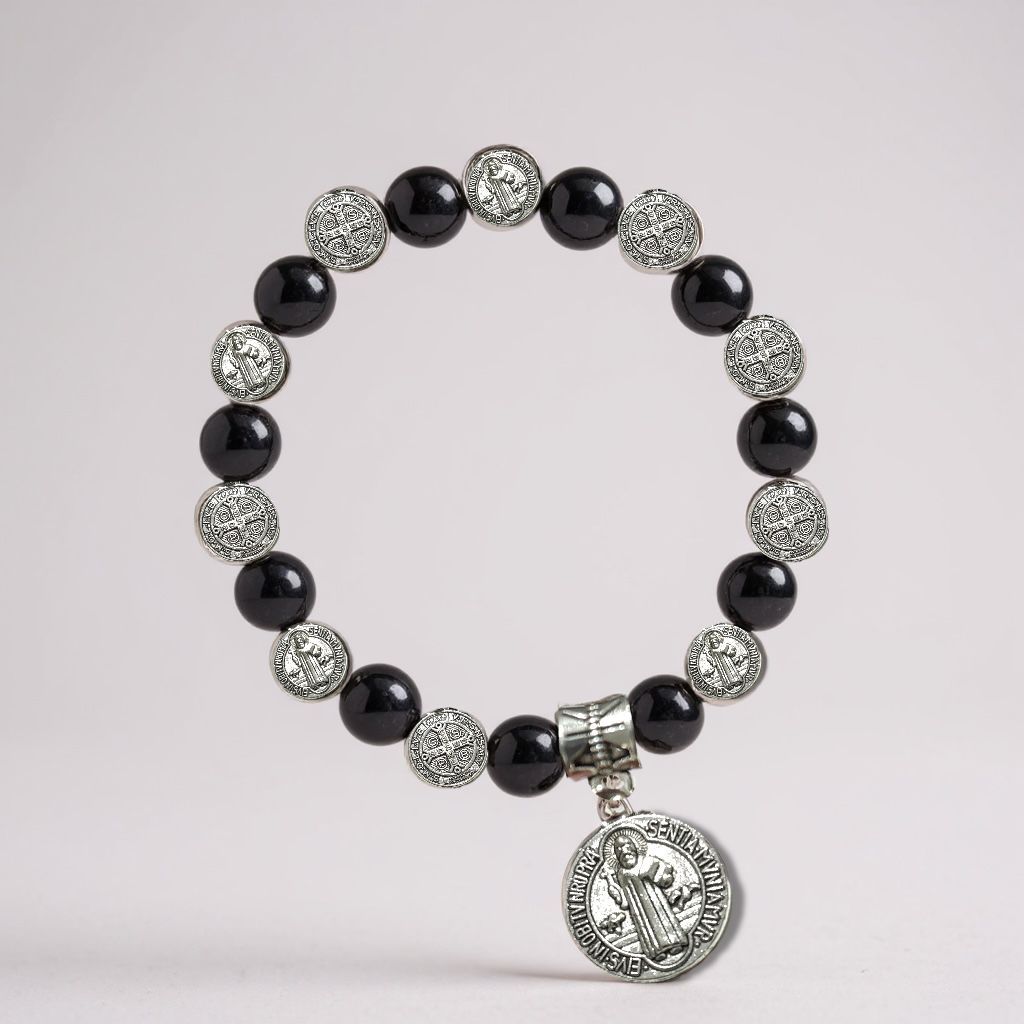 Pulseira Hematita Medalha De São Bento