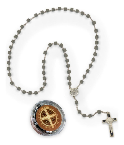 Terço Hematita São Bento Medalha Com Caixa 49cm