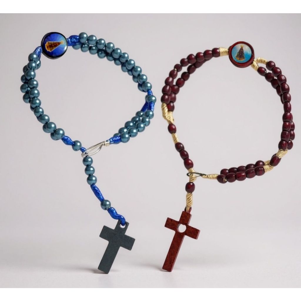 Terço Pulso Madeira Medalha Nossa Senhora Aparecida Cruz 27