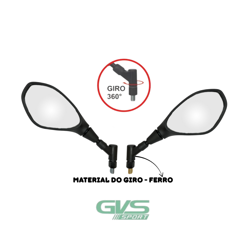 Retrovisor F800 Rosca Honda Yamaha Inverso Giro 360 Lente Convexa Gvs Par