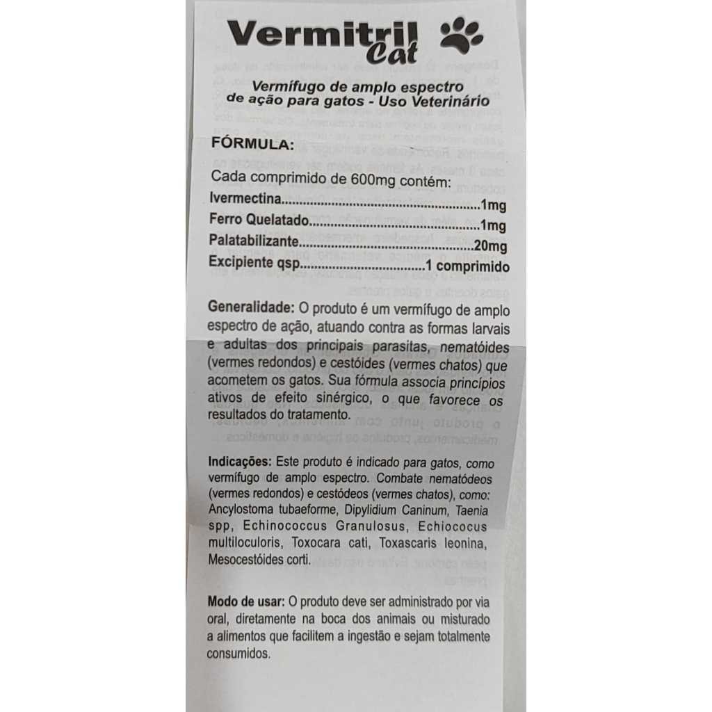 Vermitril gatos Anti Pulgas E Carrapatos 4 Comprimidos mastigáveis
