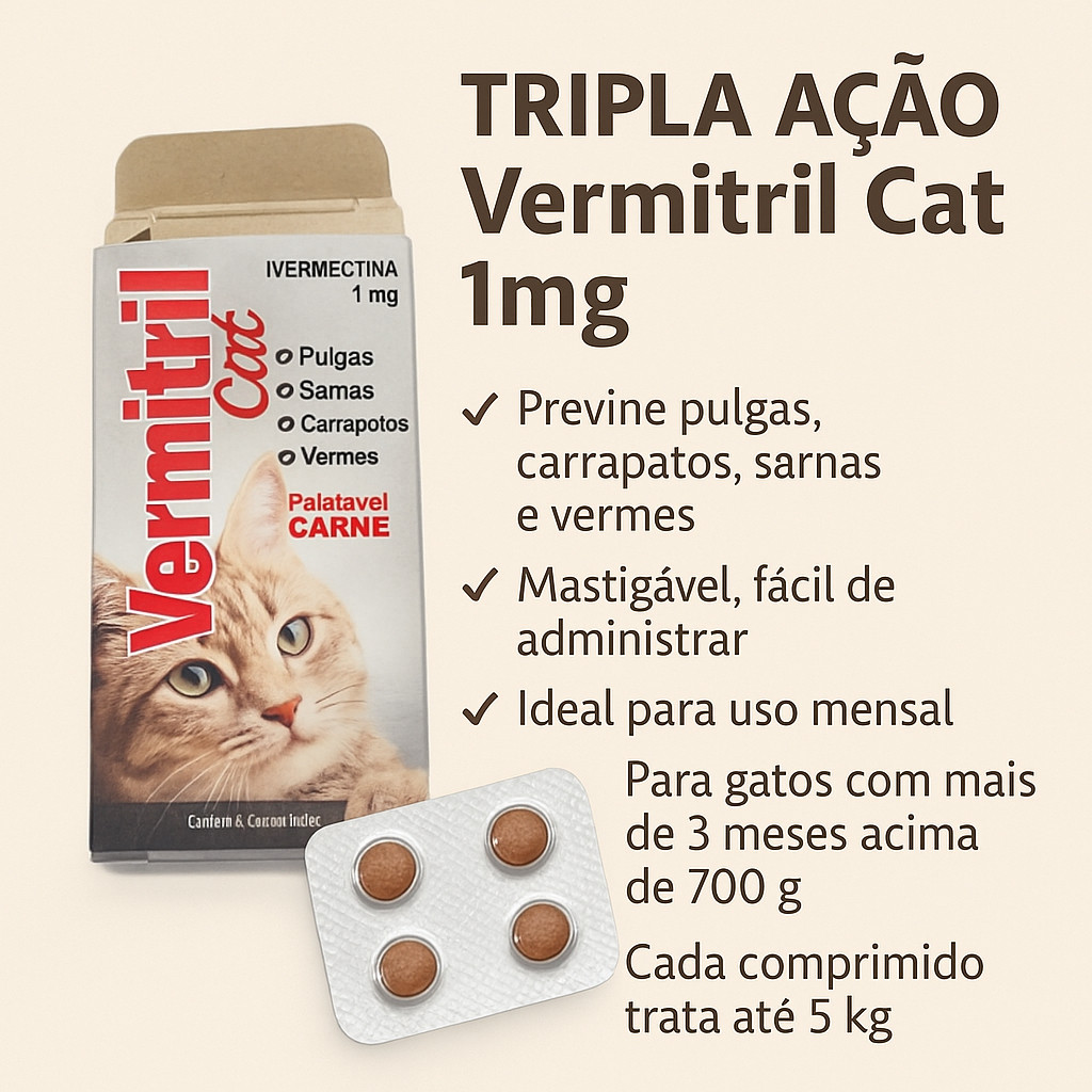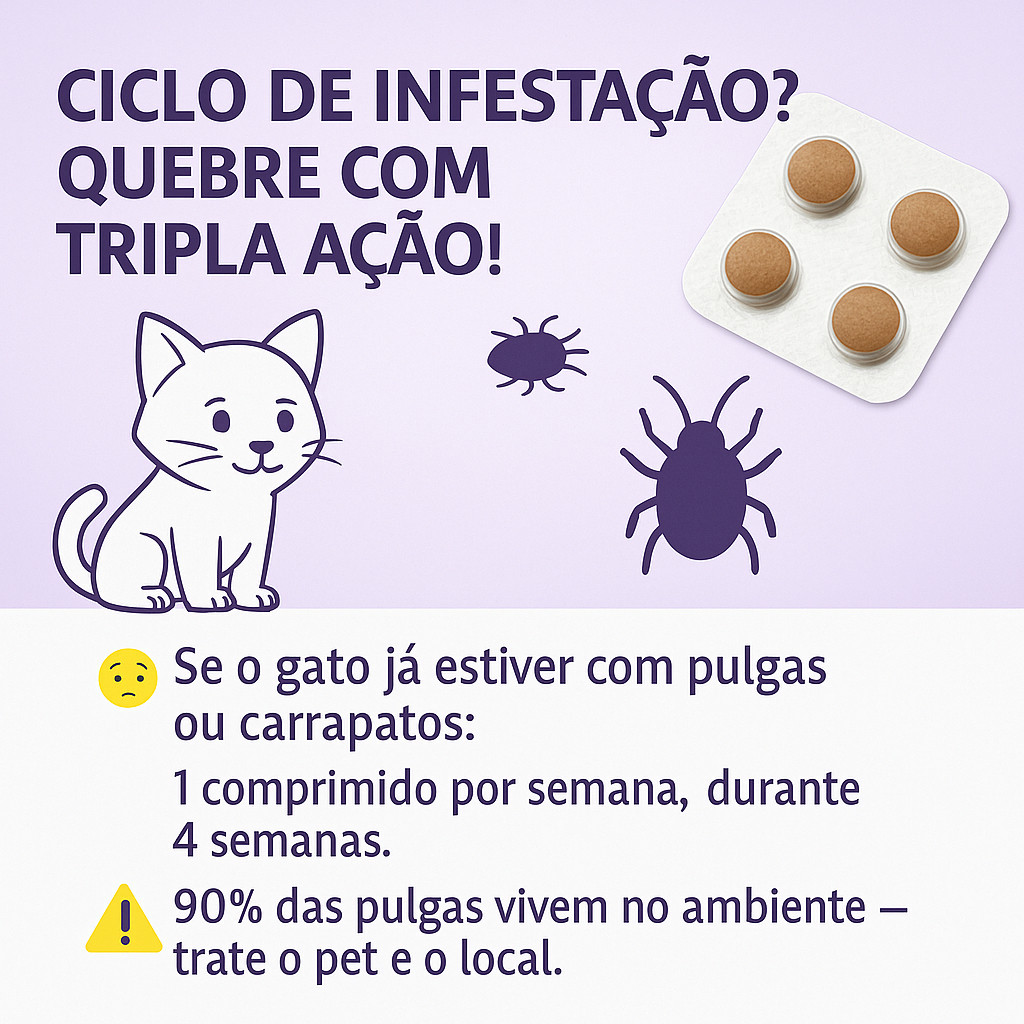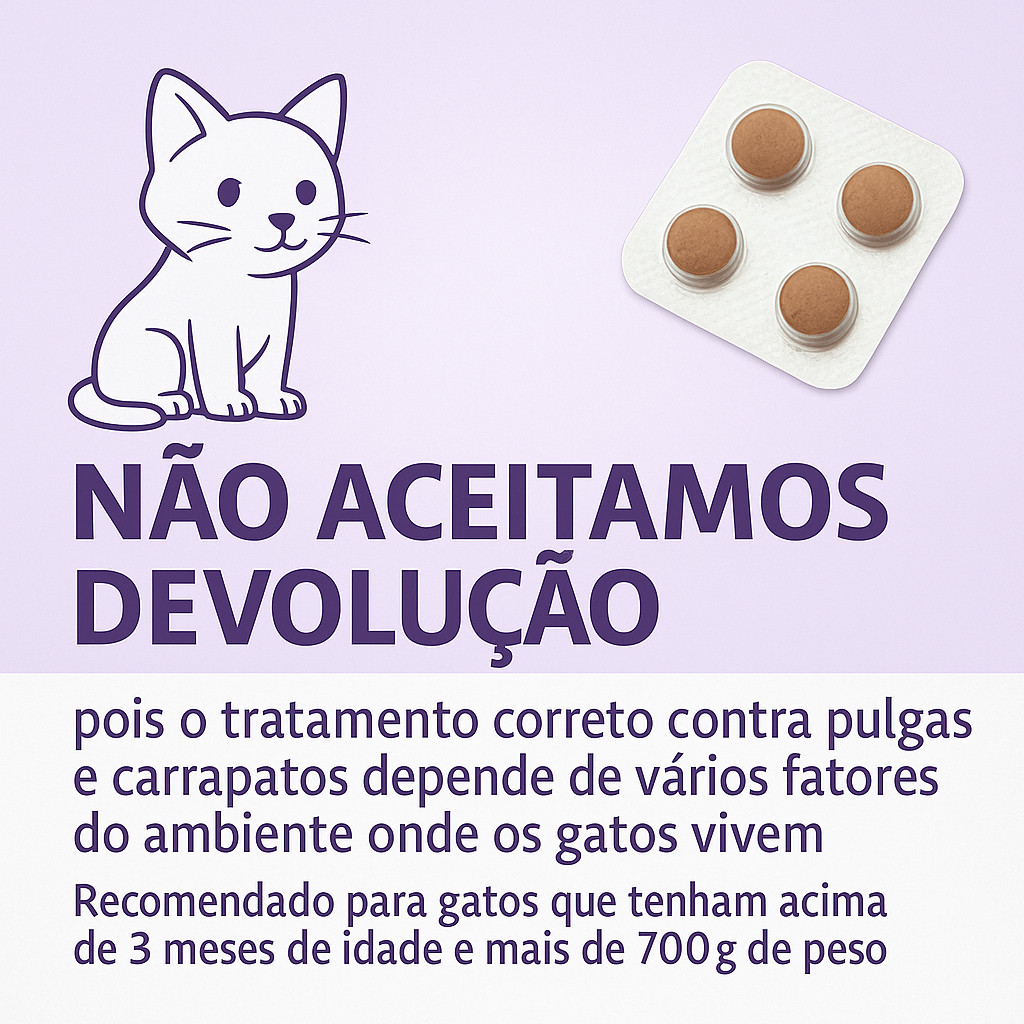 12 Comprimidos Anti Vermes, Carrapatos, Pulgas E Sarnas Para Gatos - Mastigáveis Sabor Carne