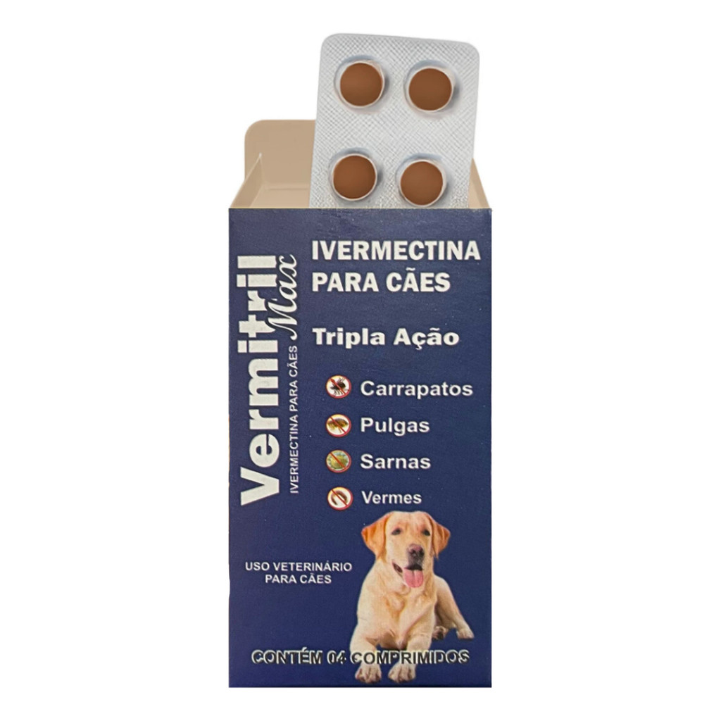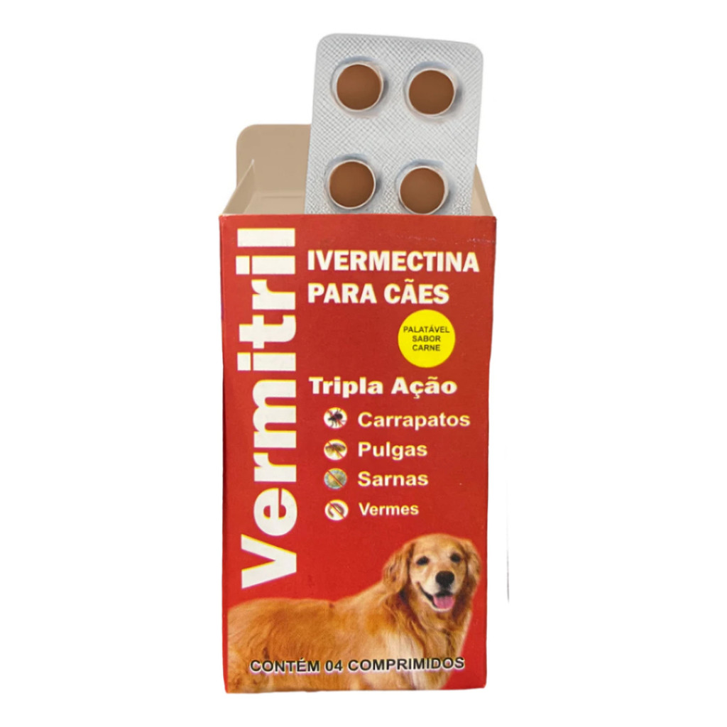 Vermitril Anti Pulgas E Carrapatos 4 Comp Mastigáveis 1-60kg | Cães e Gatos