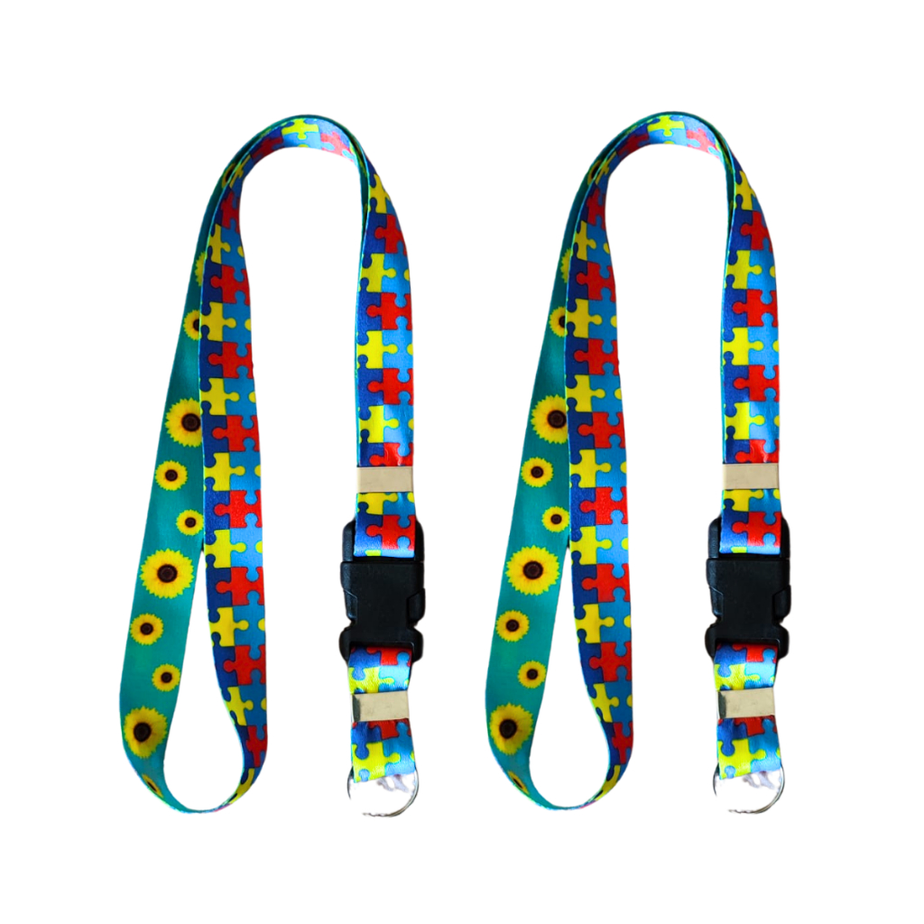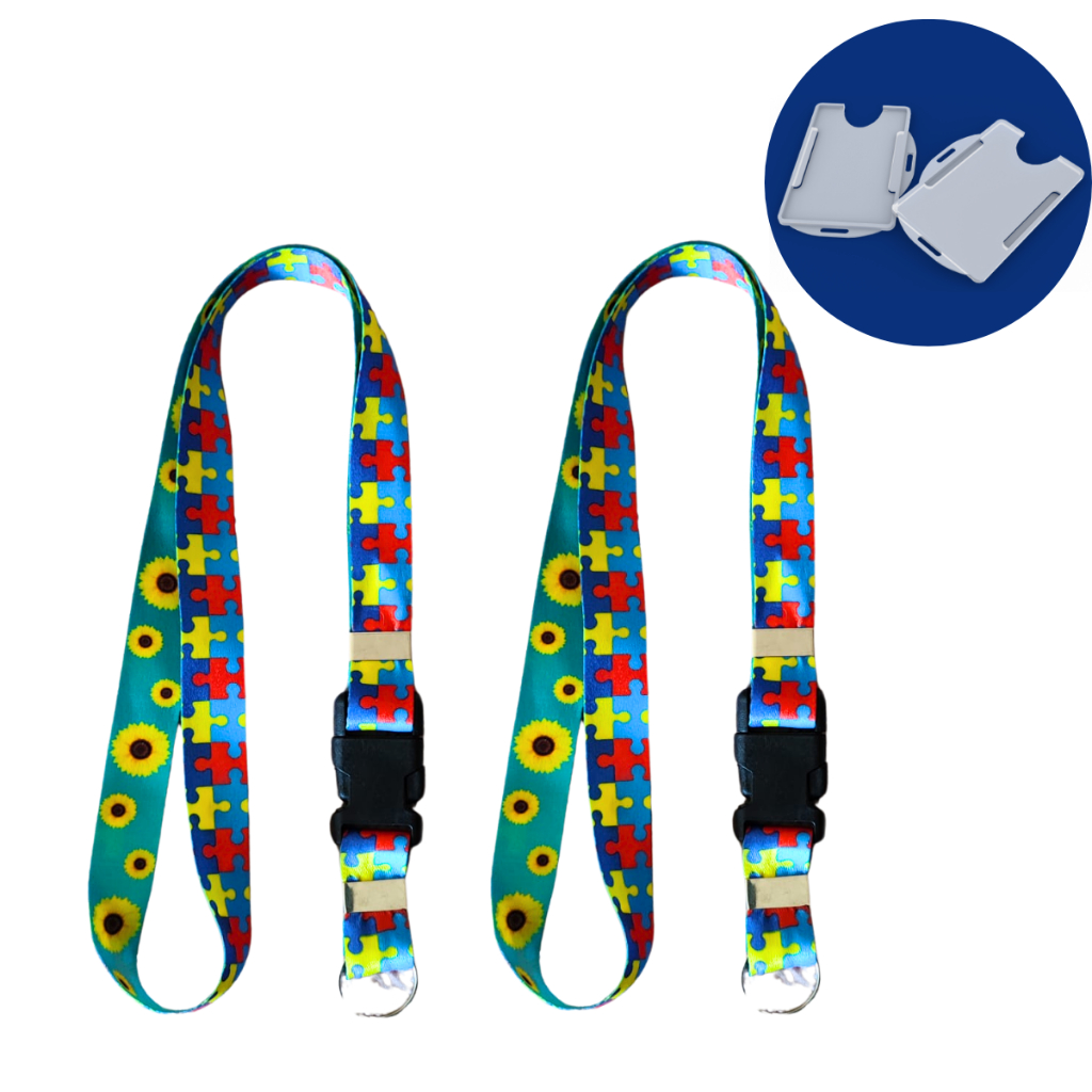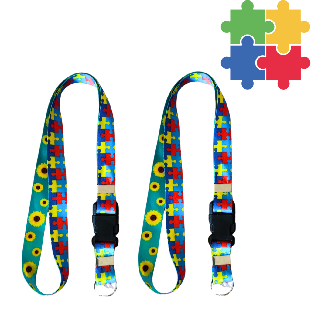 Kit Cordão Autista Autismo Quebra Cabeça Girassol Dupla Face