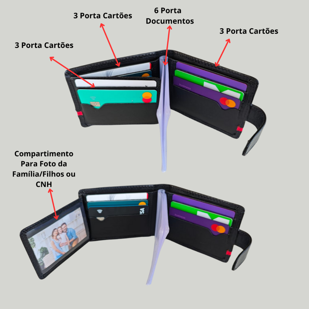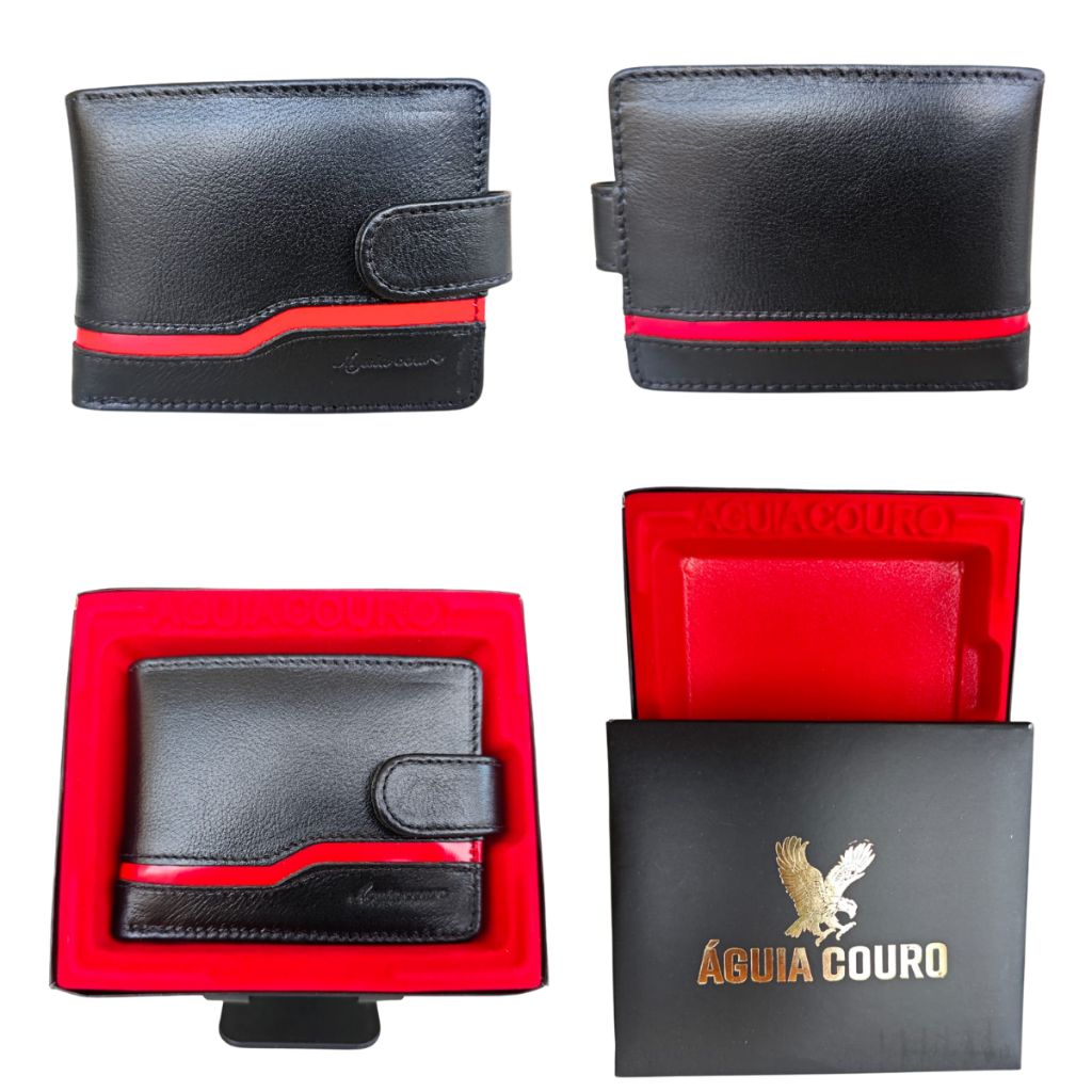 Carteira de couro masculina luxo premium legitimo porta cartão Águia Couro Cor Preto Presente