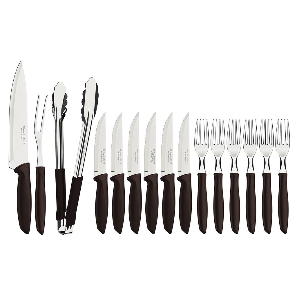 Jogo Churrasco Tramontina Plenus 15 Peças Lâminas de Aço Inox e Cabos de Polipropileno Marrom - 23498468
