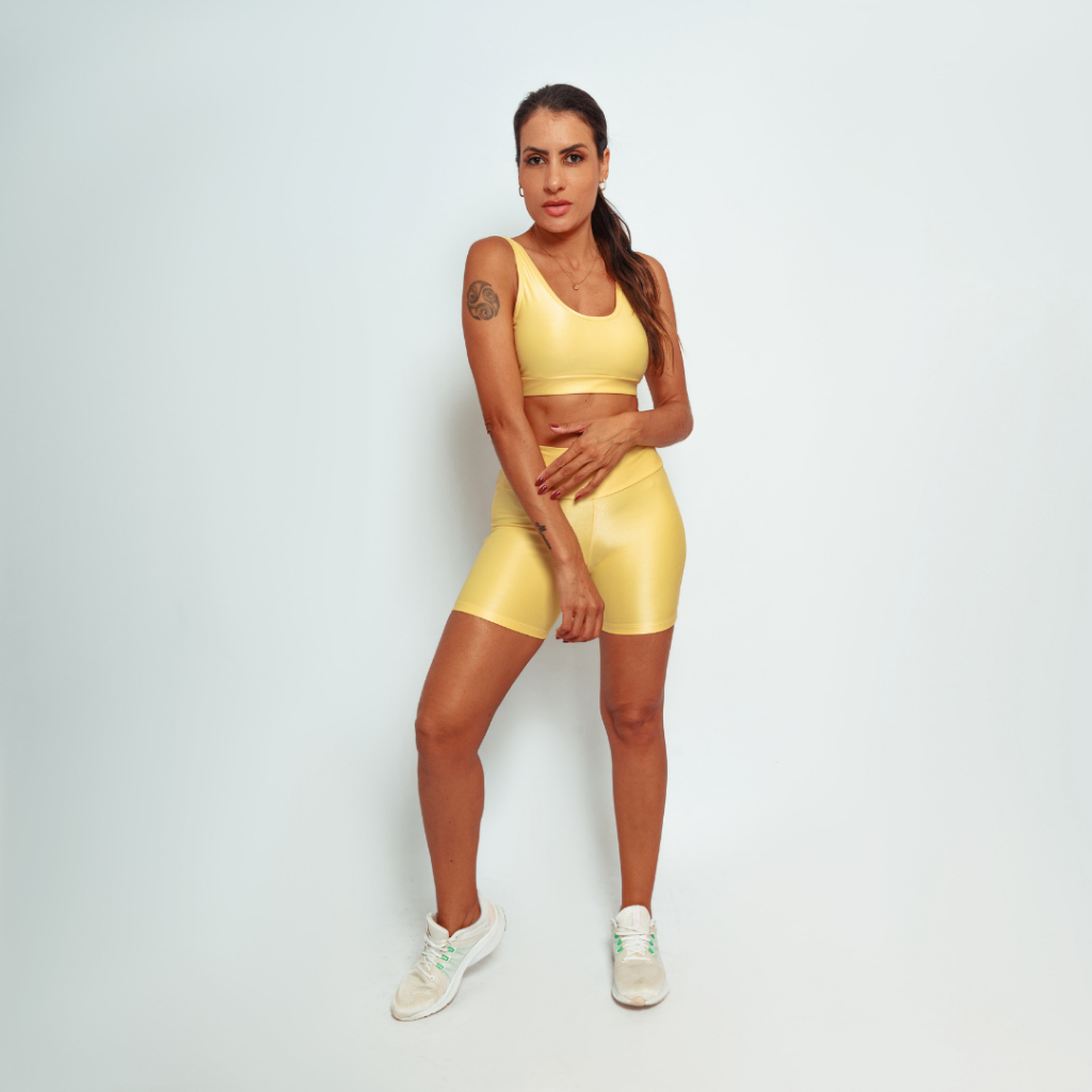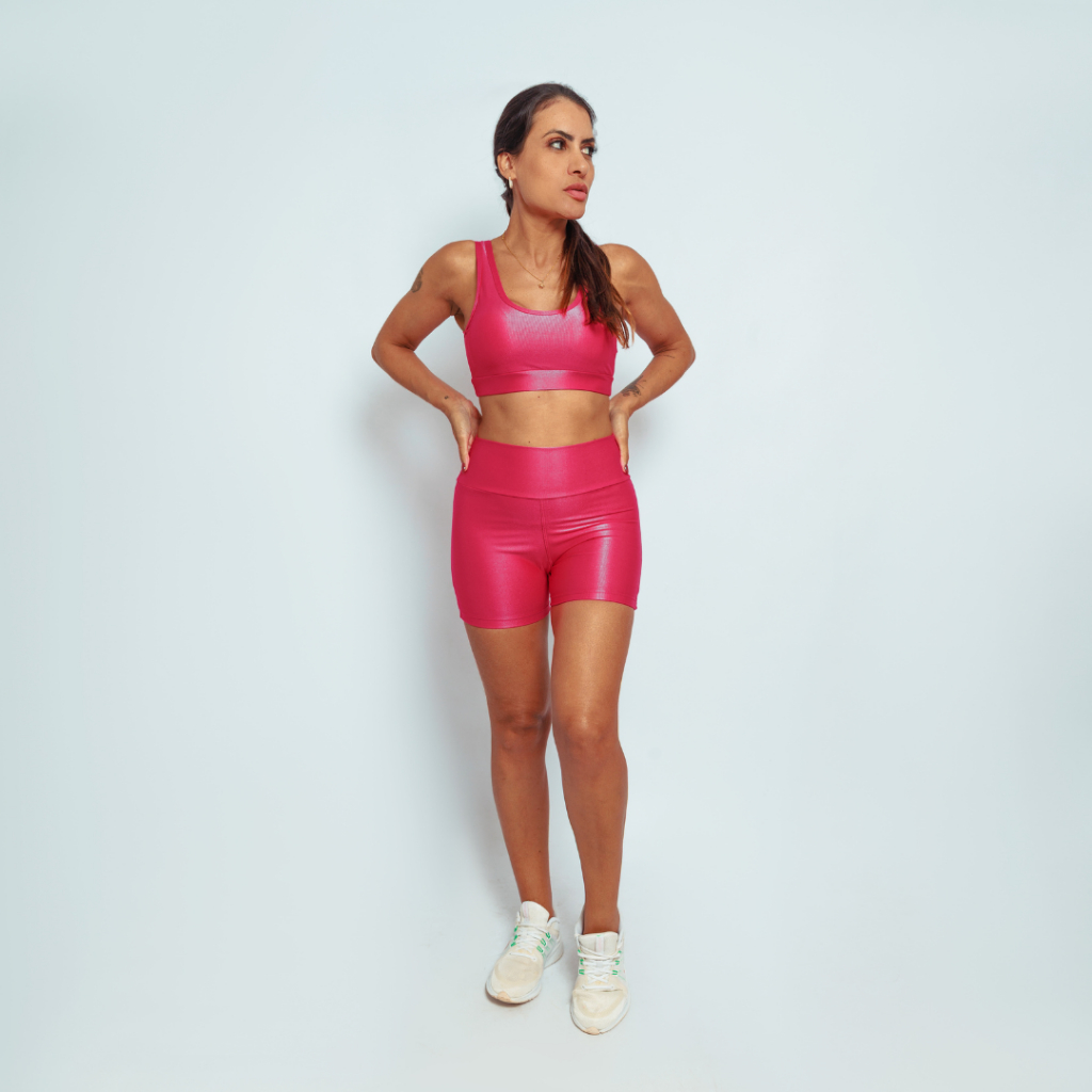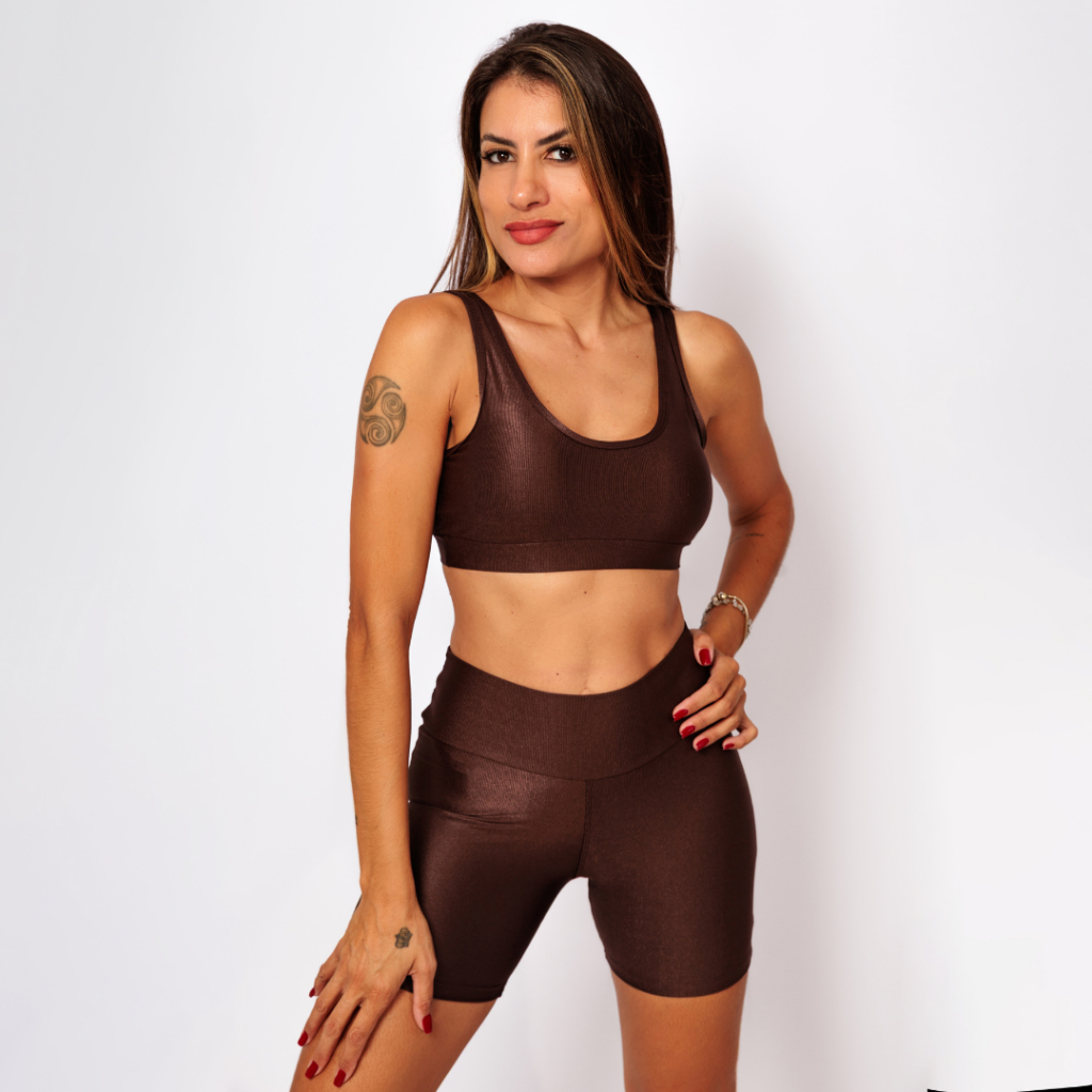 Conjunto Top Regata + Shorts Canelado Top Abertura Bojo Costura Reforçada Academia Poliamida Brilho Crossfit