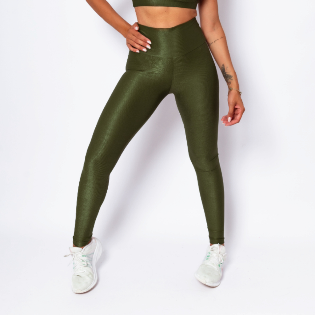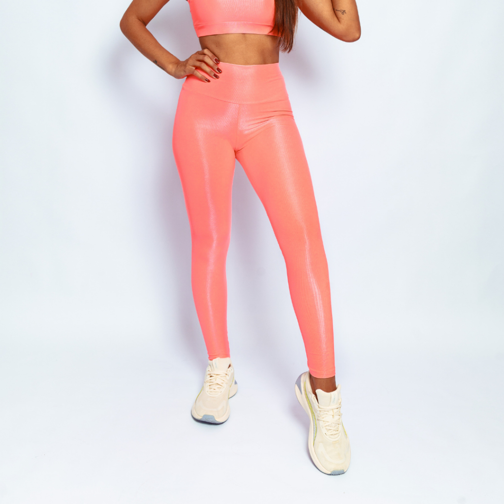 Calça Legging Feminina Canelada Cós Alto Academia Costura Reforçada Poliamida Short Premium Brilho