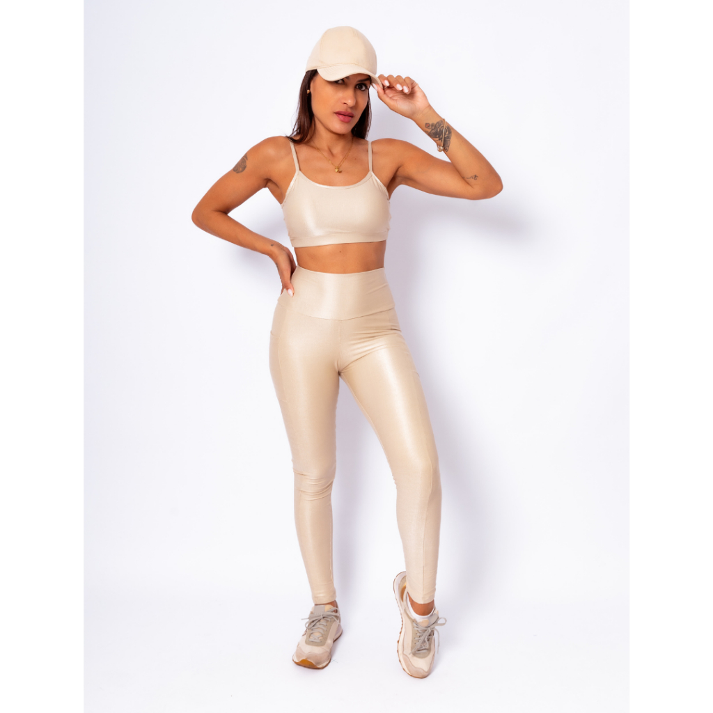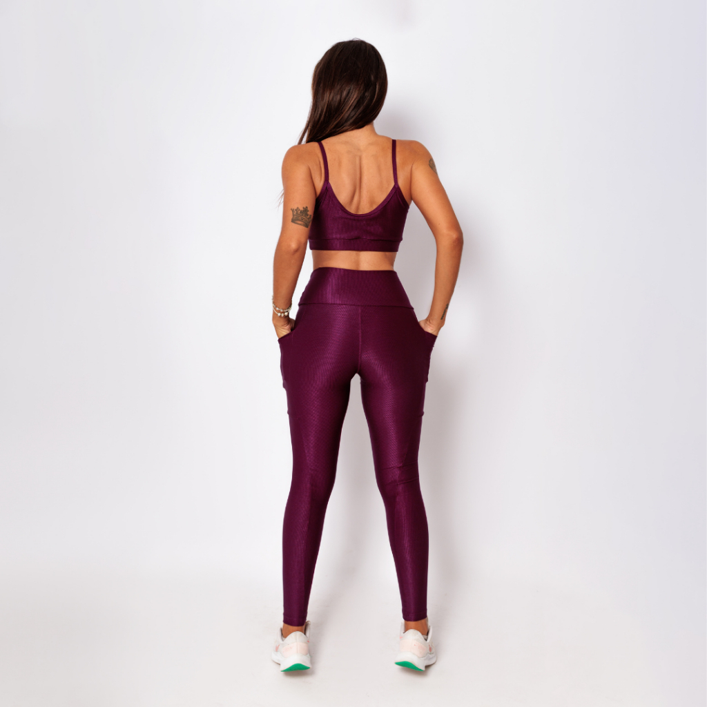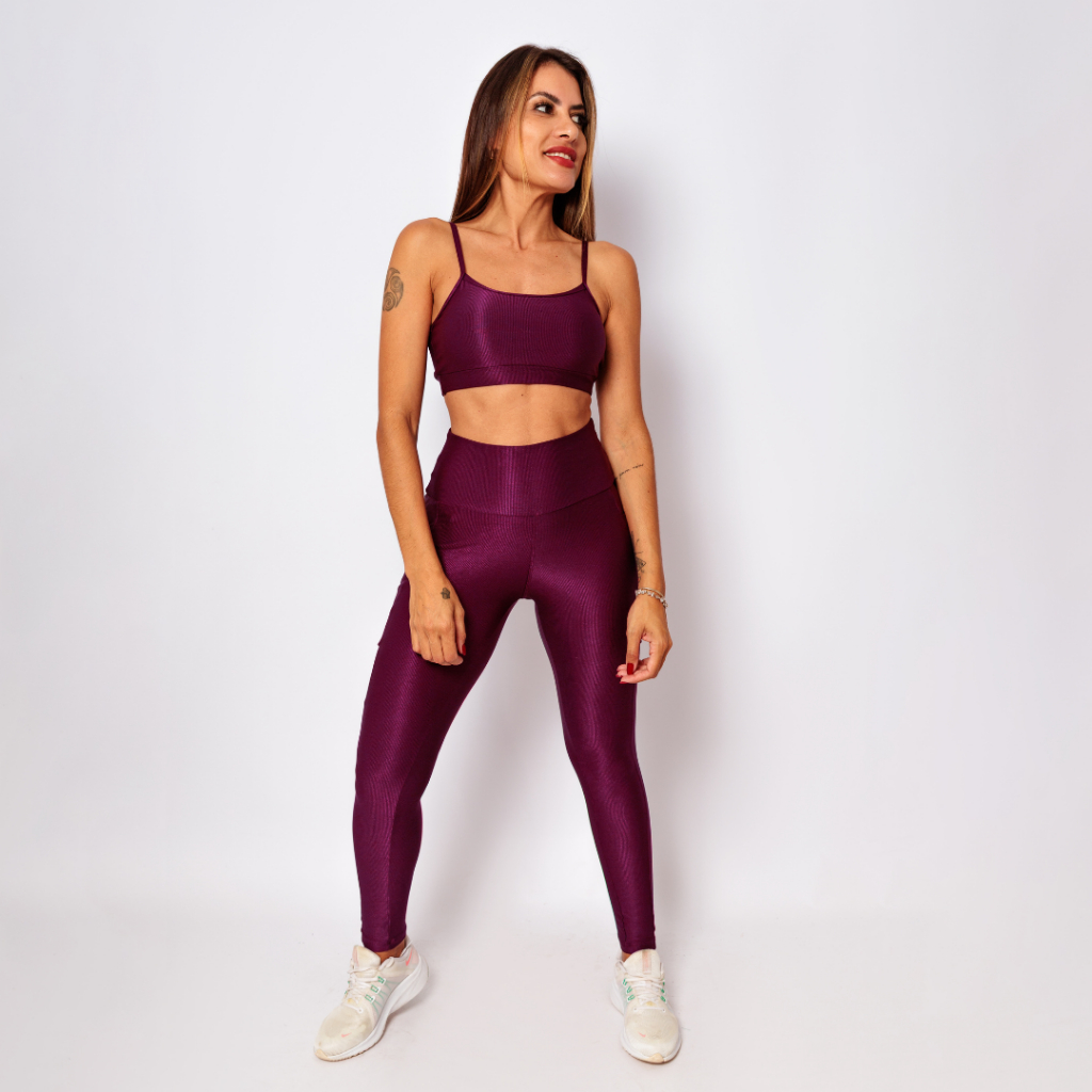 Conjunto Legging Bolso + Top Alcinha Abertura Bojo Micro Canelado Academia