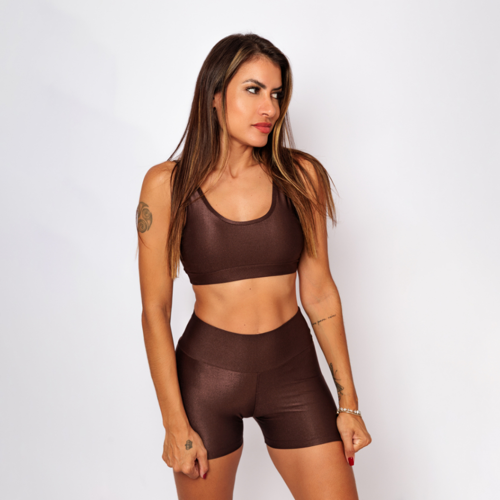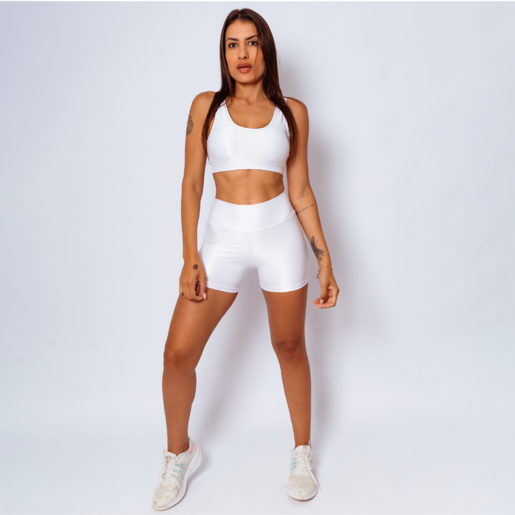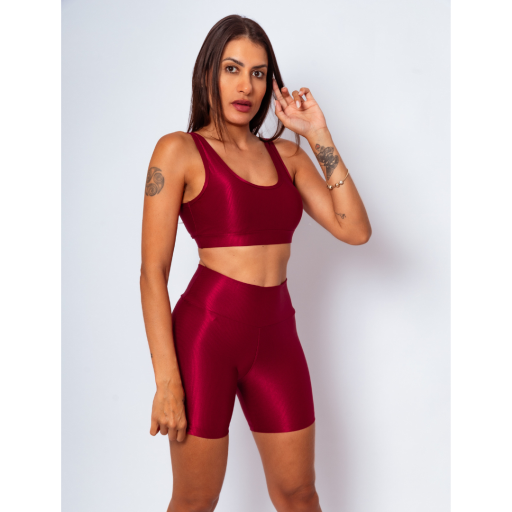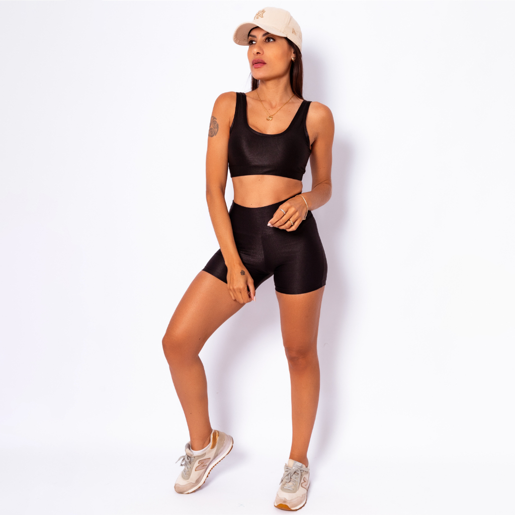 Conjunto Top Regata Shine + Bermuda Micro Canelado Poliamida