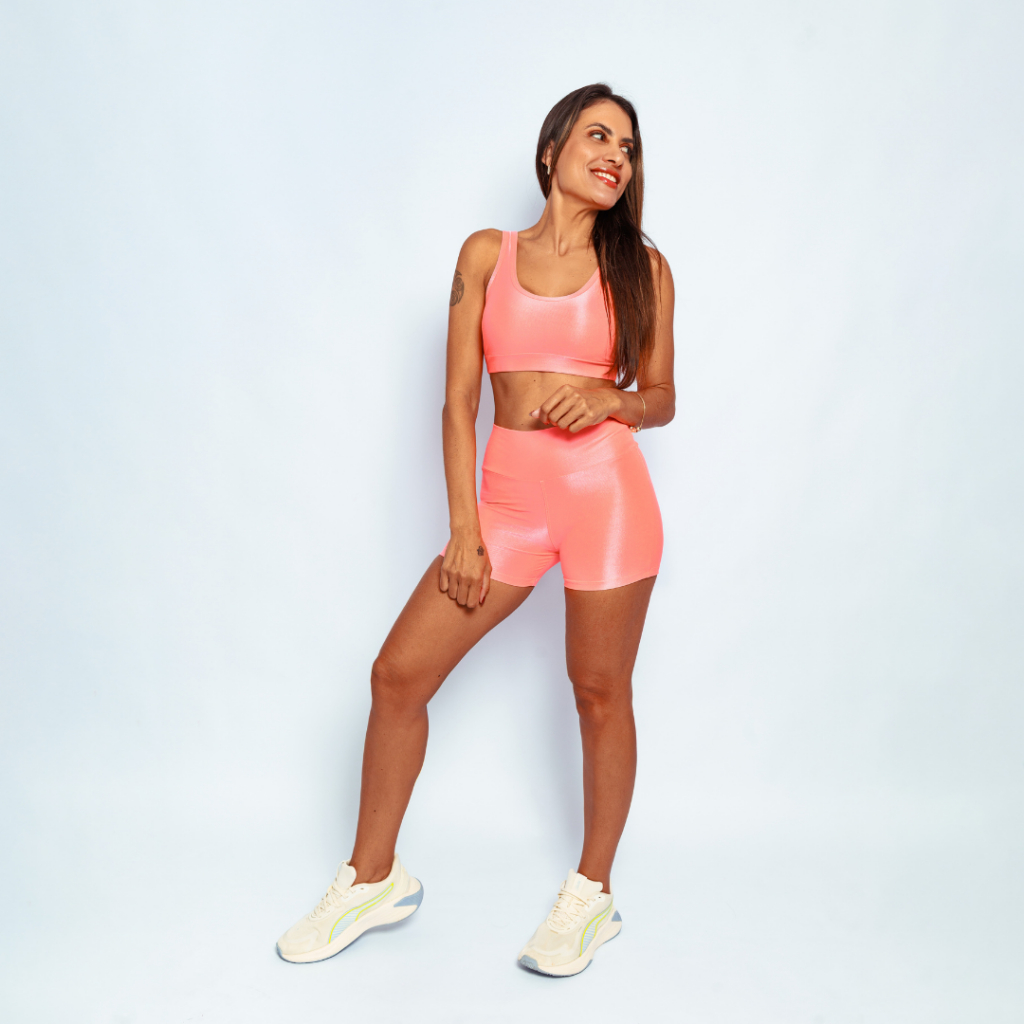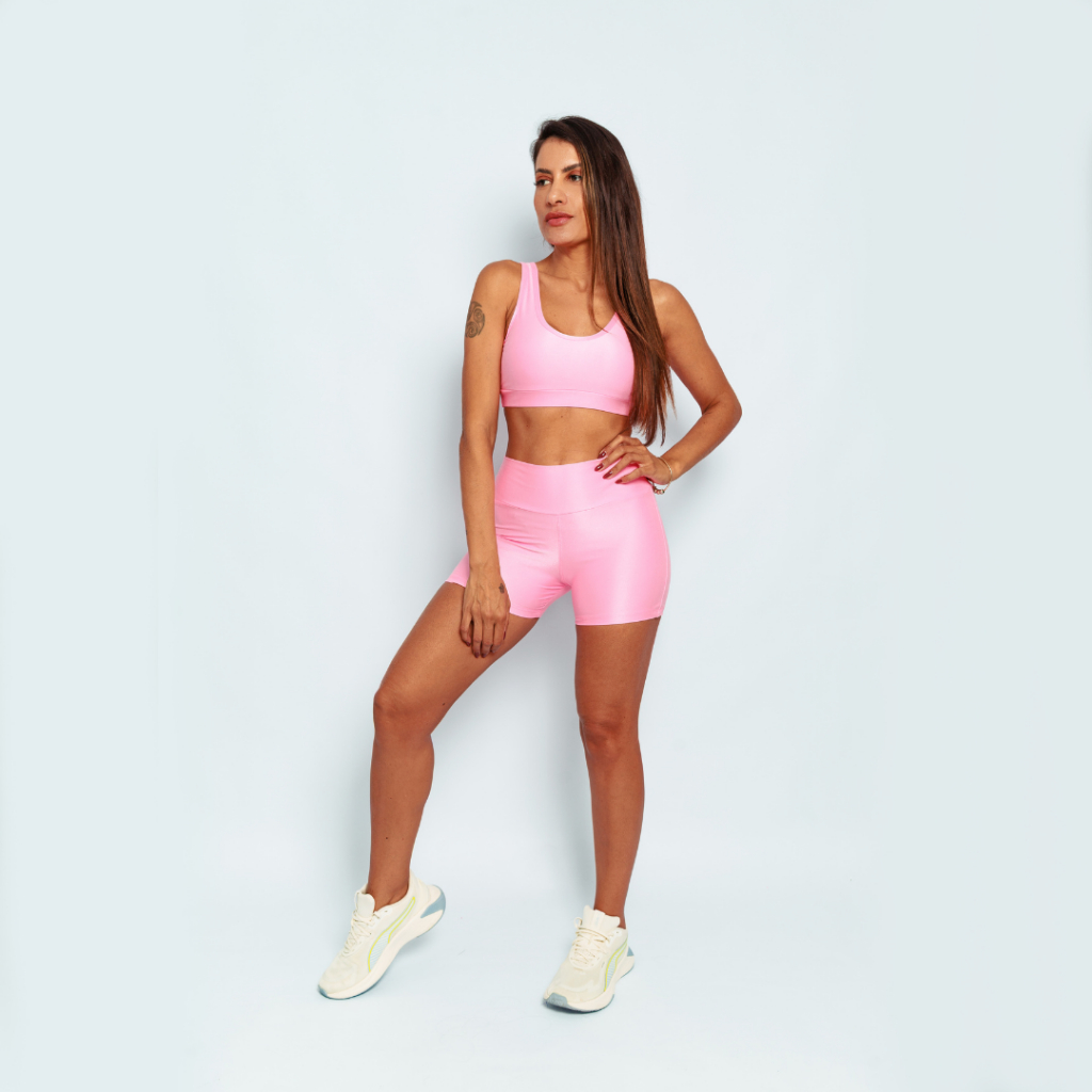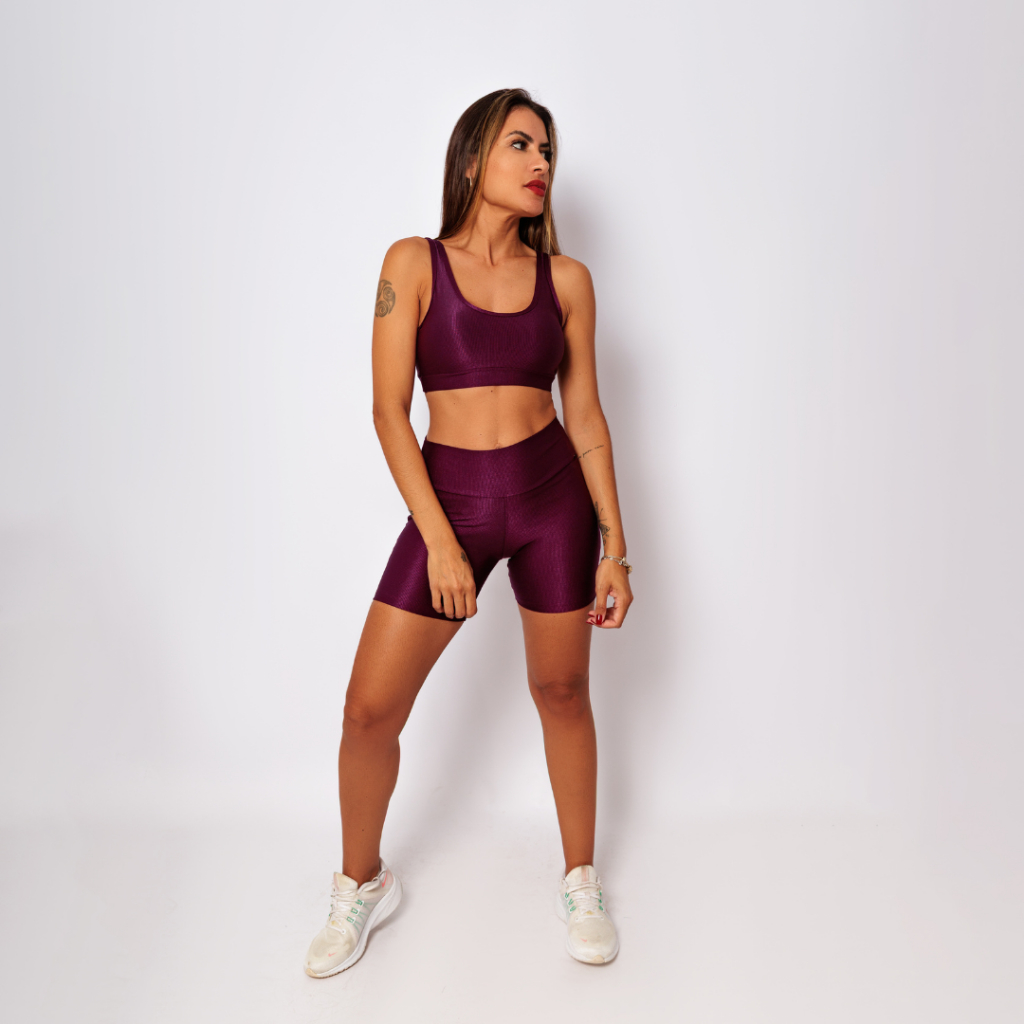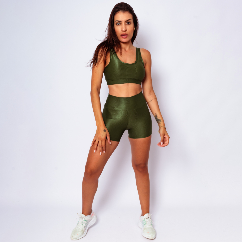 Conjunto Top Regata Shine + Bermuda Micro Canelado Poliamida