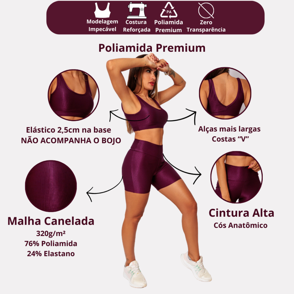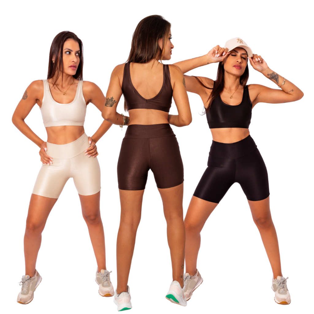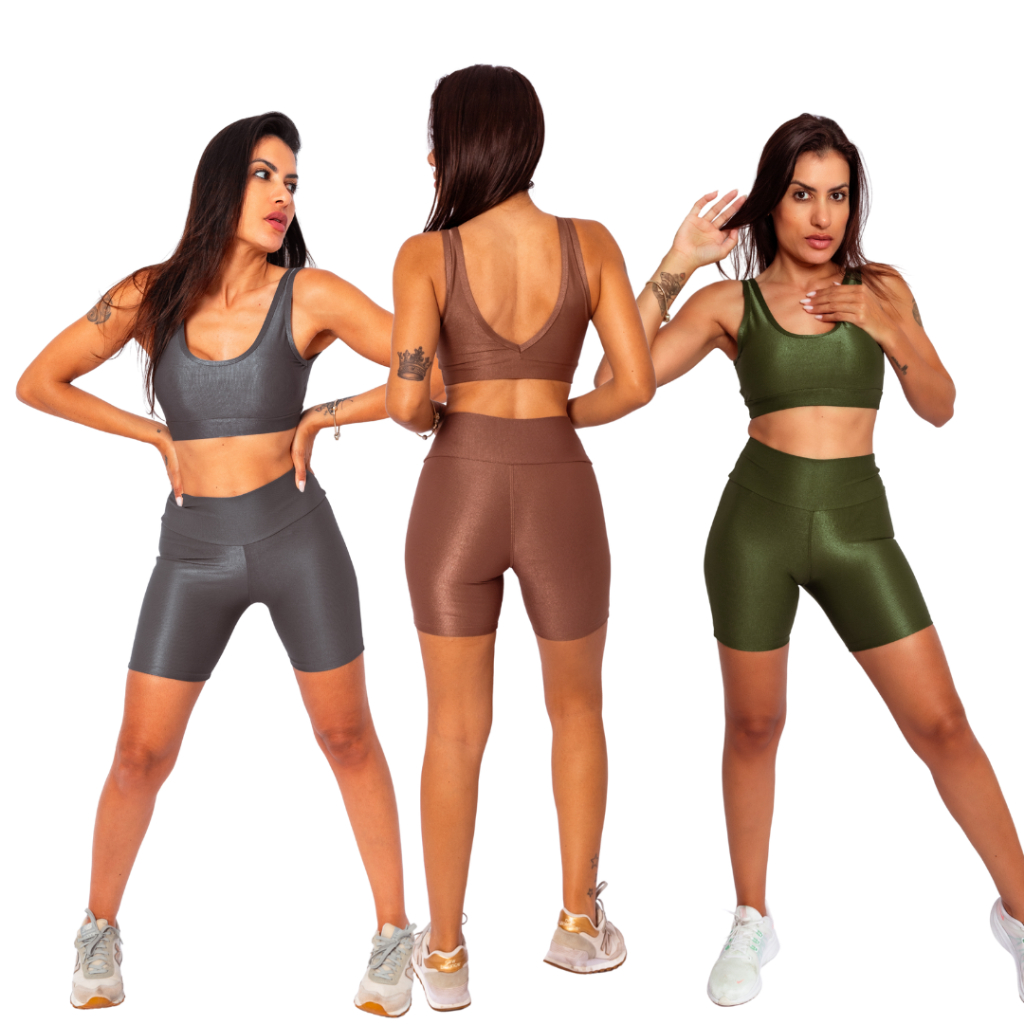 Kit C/3 Conjuntos Top Regata + Bermuda Meia Coxa Mais Comprida Micro Canelado Academia Abertura Bojo