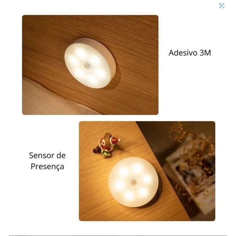 kit 3/4/6 Luminárias Lâmpada Led Sem fio com Sensor Presença recarregável
