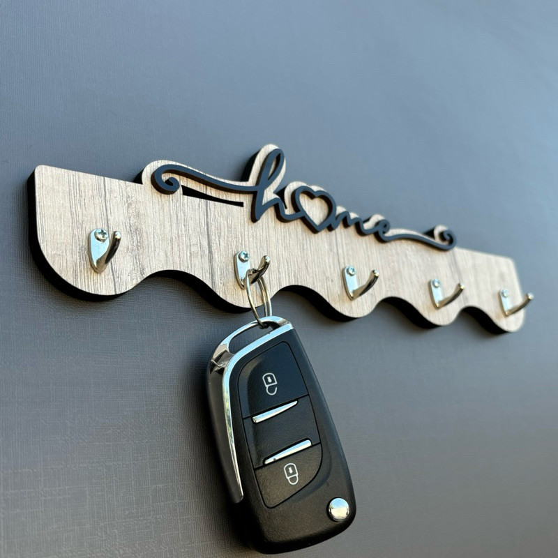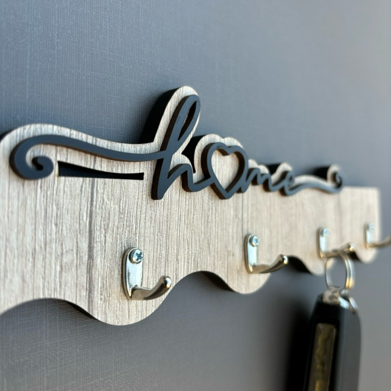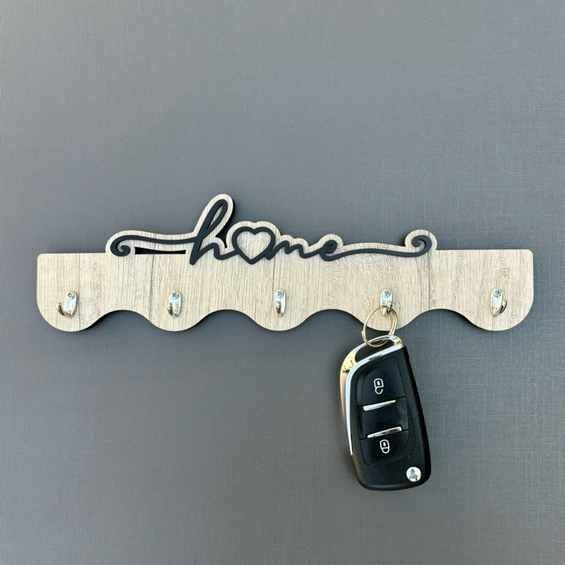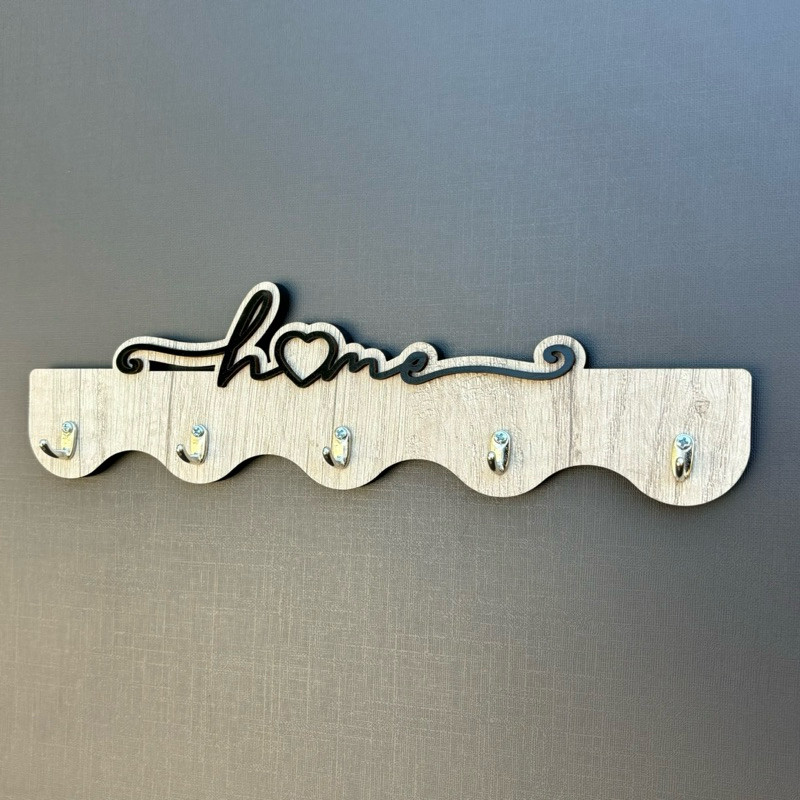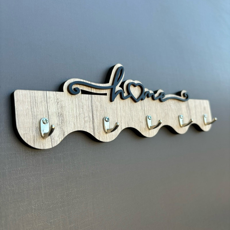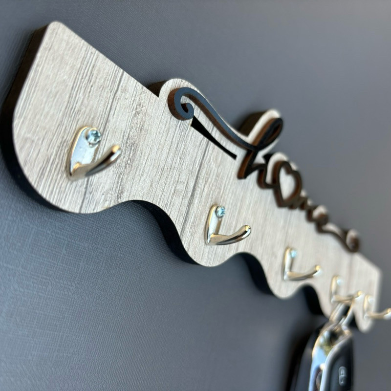 Porta Chaves Home Ondas em MDF Aspen com Ganchos de Metal - 25 x 10