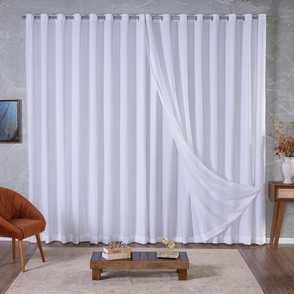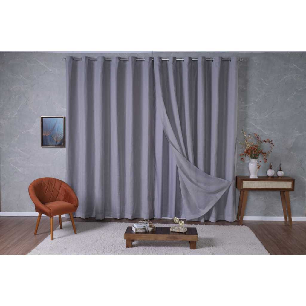 Cortina Voil Gaze de Linho 5,00x2,30/2,40/2,50/2,60/2,70/2,80com Forro Microfibra com Ilhós Cromado