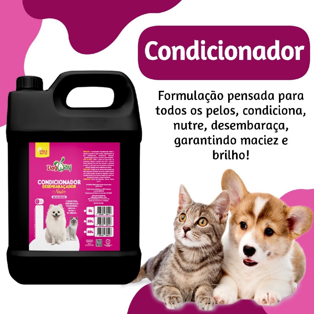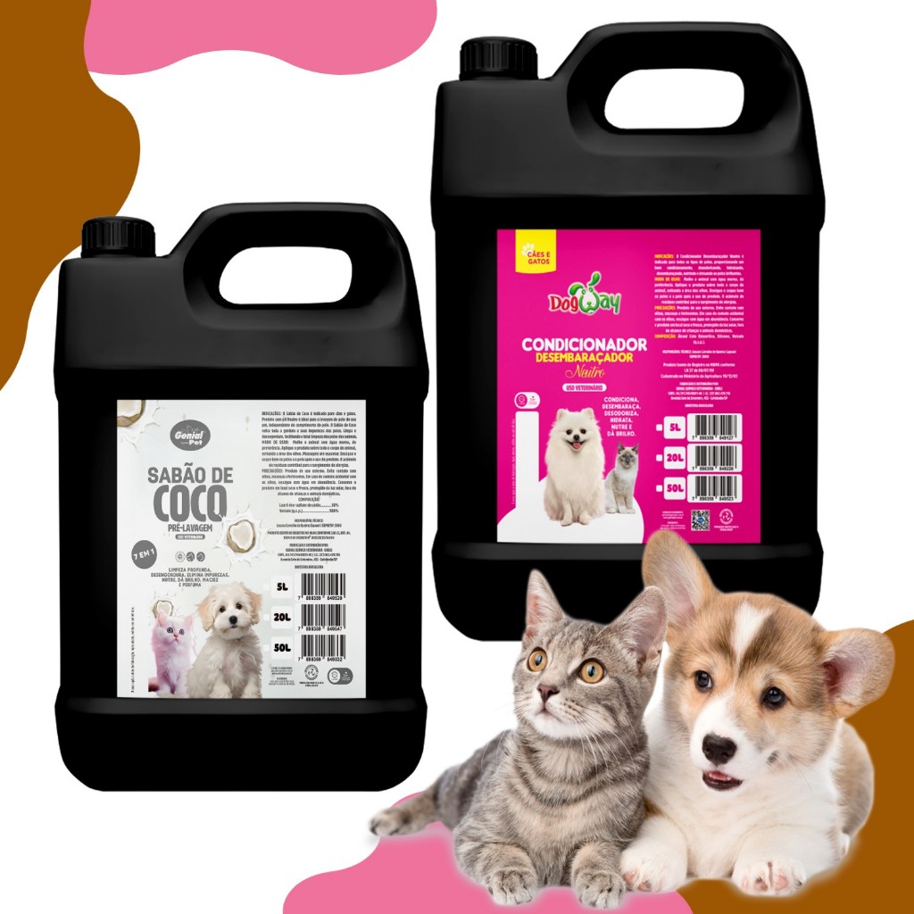 Kit Shampoo Neutro + Condicionador Desembaraça pelos Profissional 5L Banho e Tosa Cachorros