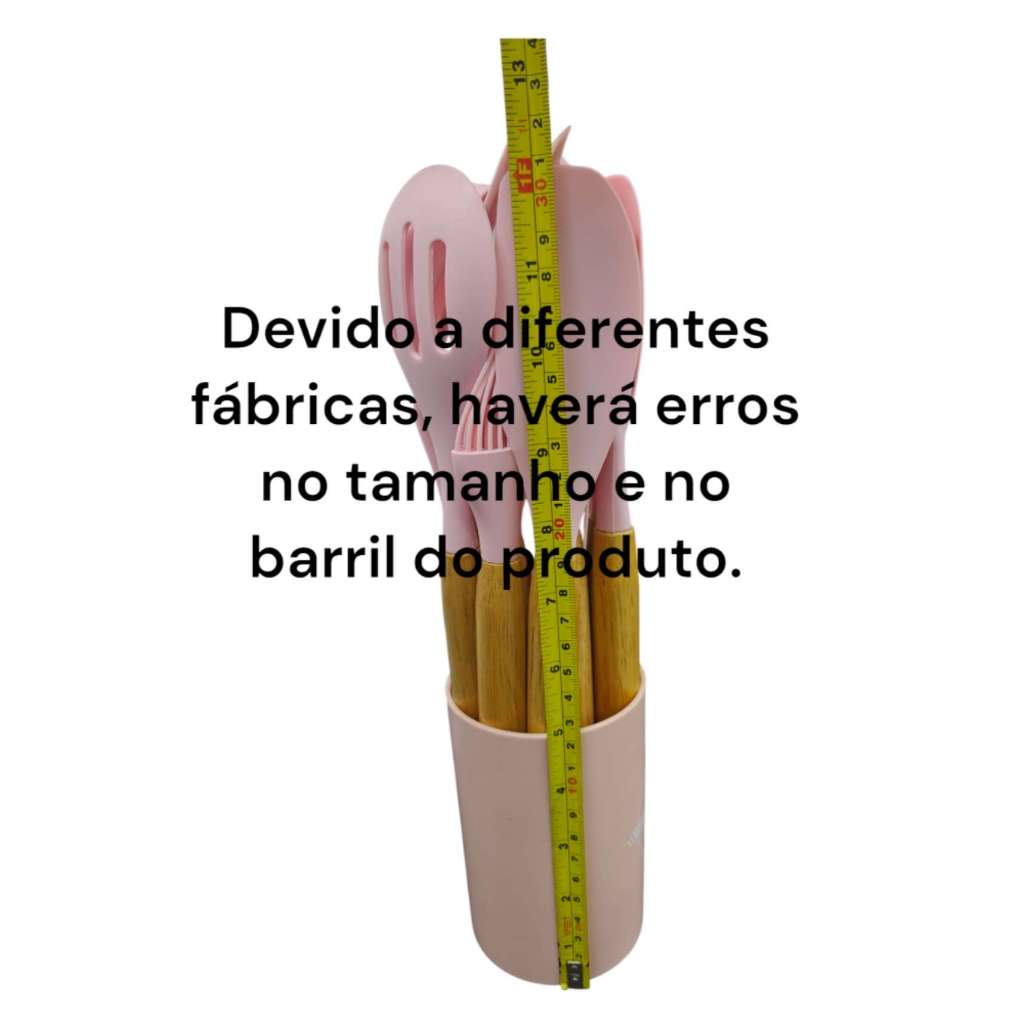 Recommend Jogo de Cozinha Kit C/12/5 Peças de Silicone, Utensílios e Copo Suporte para Cozinha Cabo de Madeira