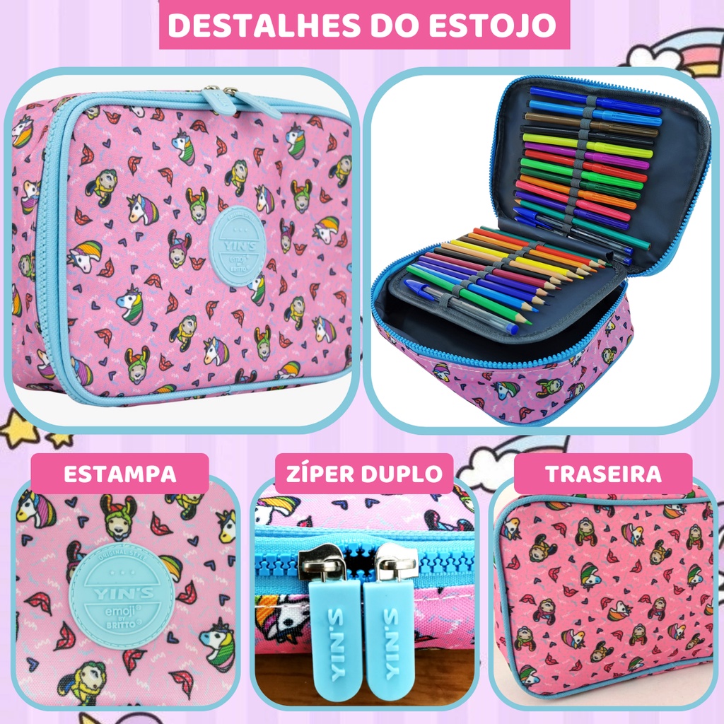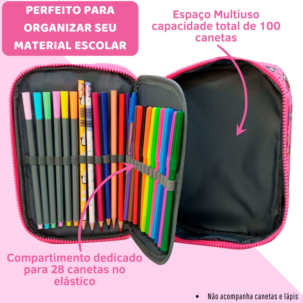 Estojo Box De Nylon Brilhoso 100 Pens Grande Estampado
