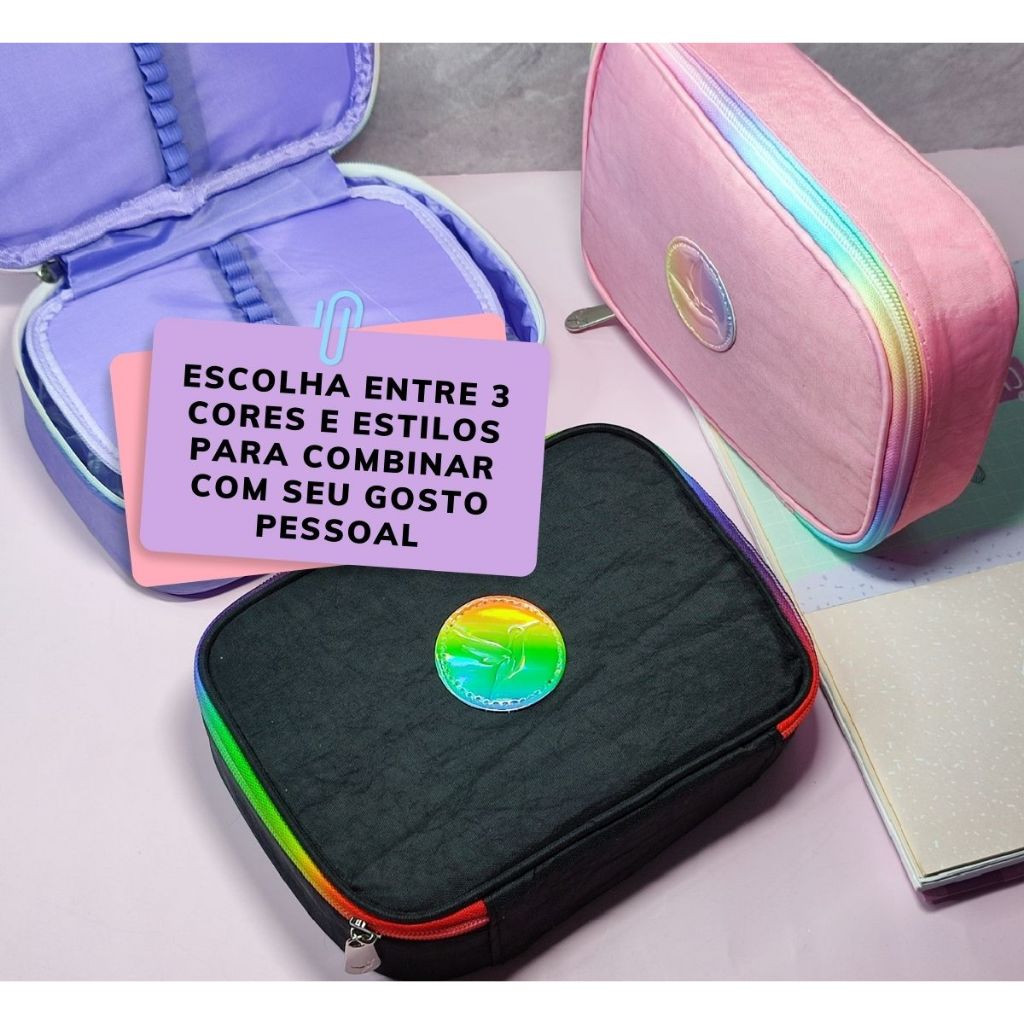 Estojo Escolar Grande Penal Organizador Box Divisória Porta Lapis Canetas