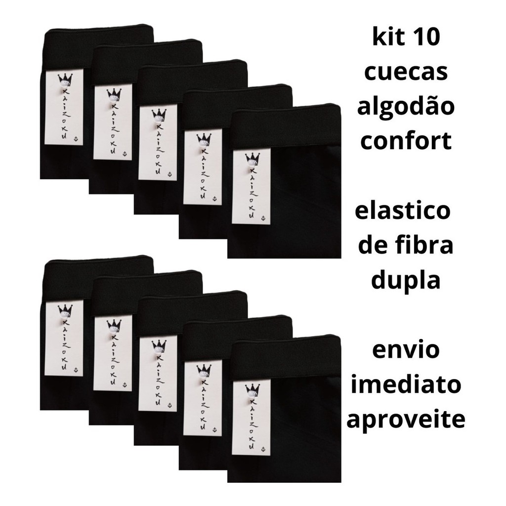 10 Cuecas Preta Boxer Algodao Conforto Cueca Box Promoção