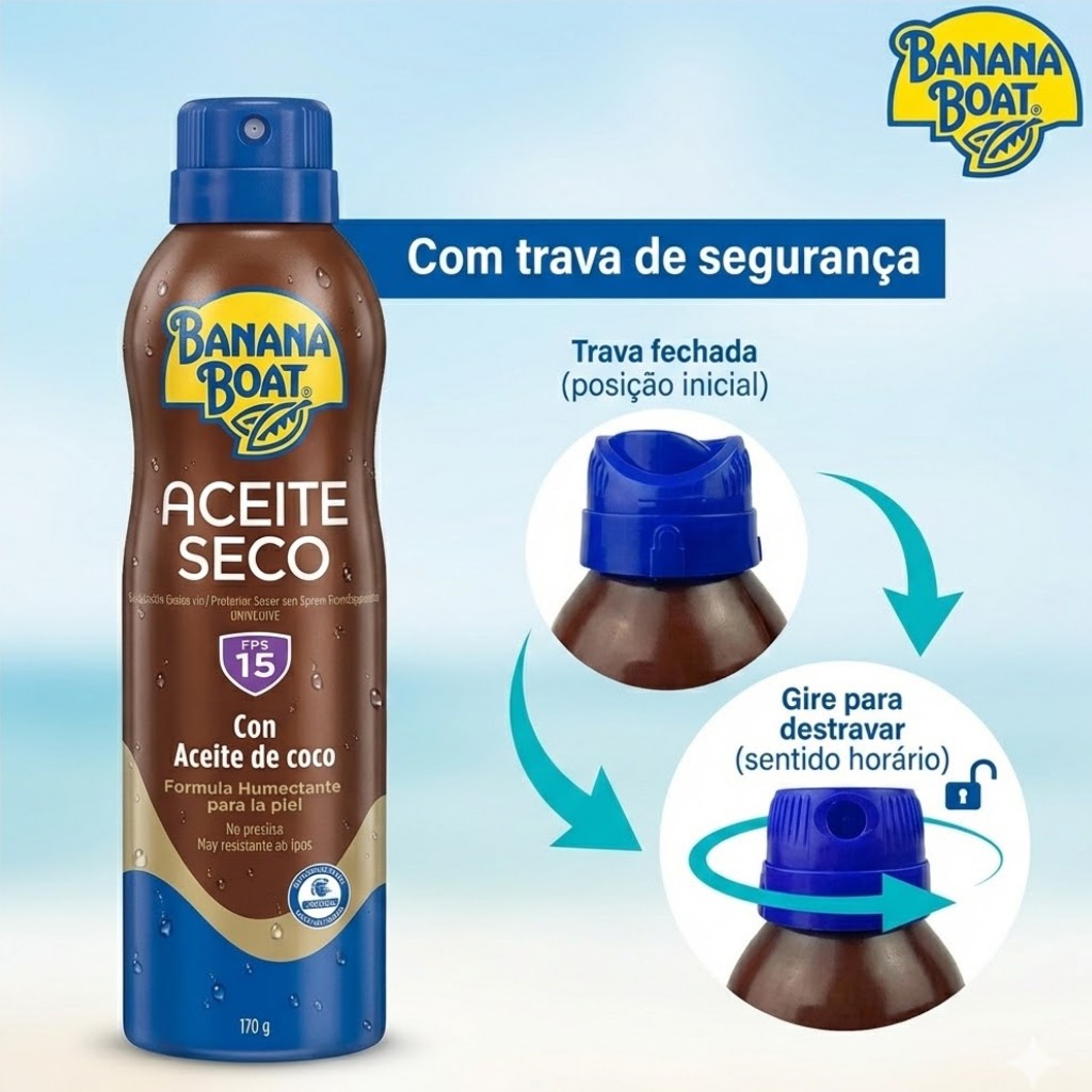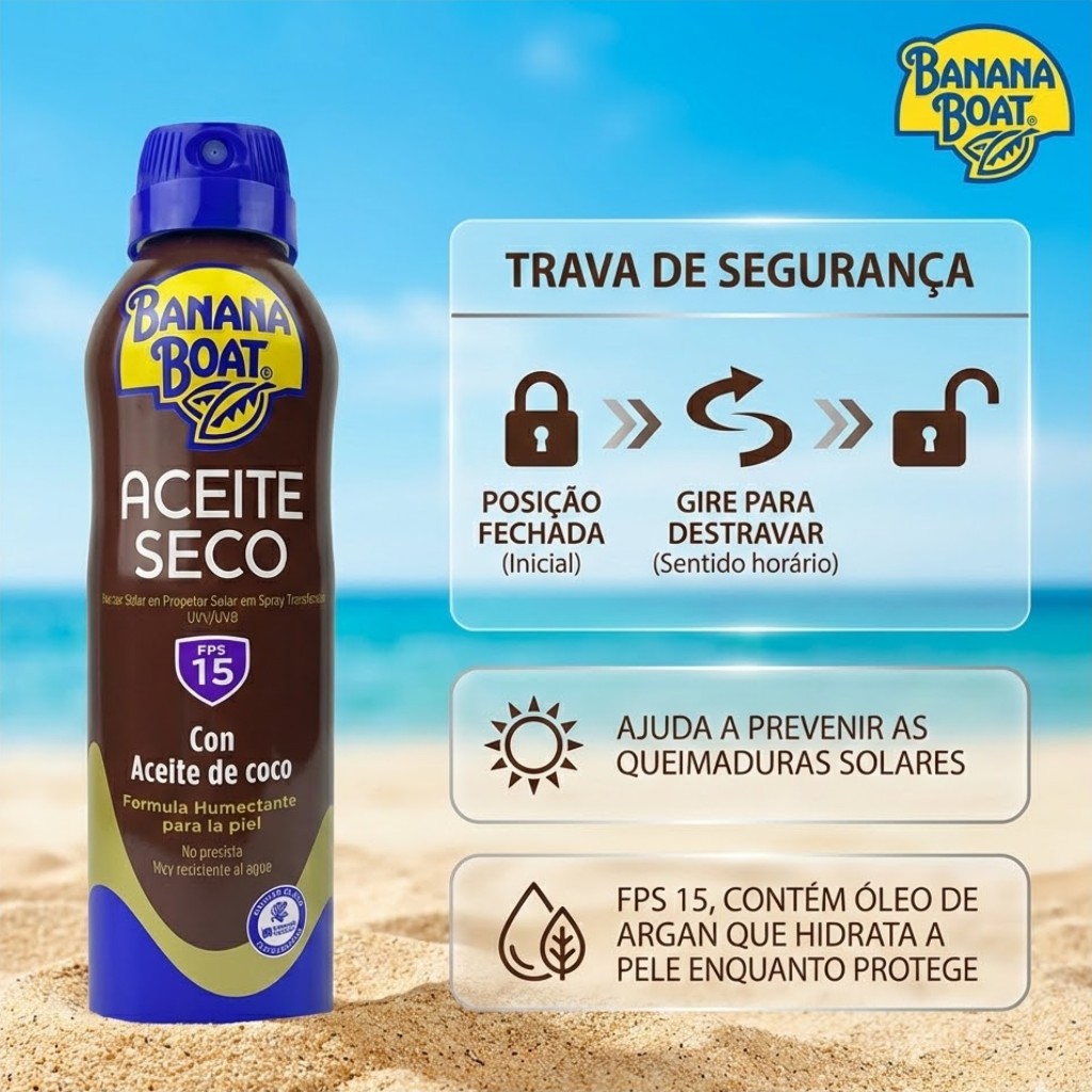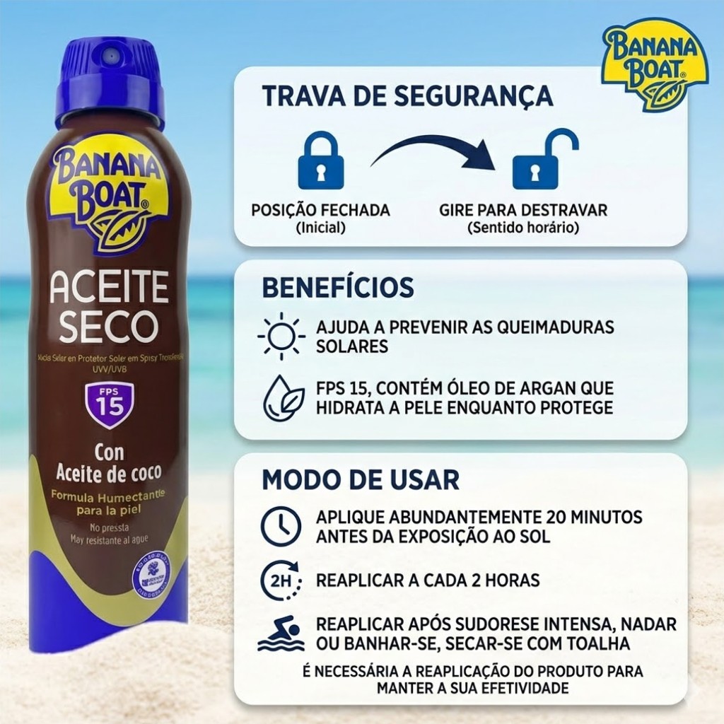 Bronzeador Banana Boat Óleo Seco 170g – Bronzeado Radiante com Proteção Solar 15 FPS