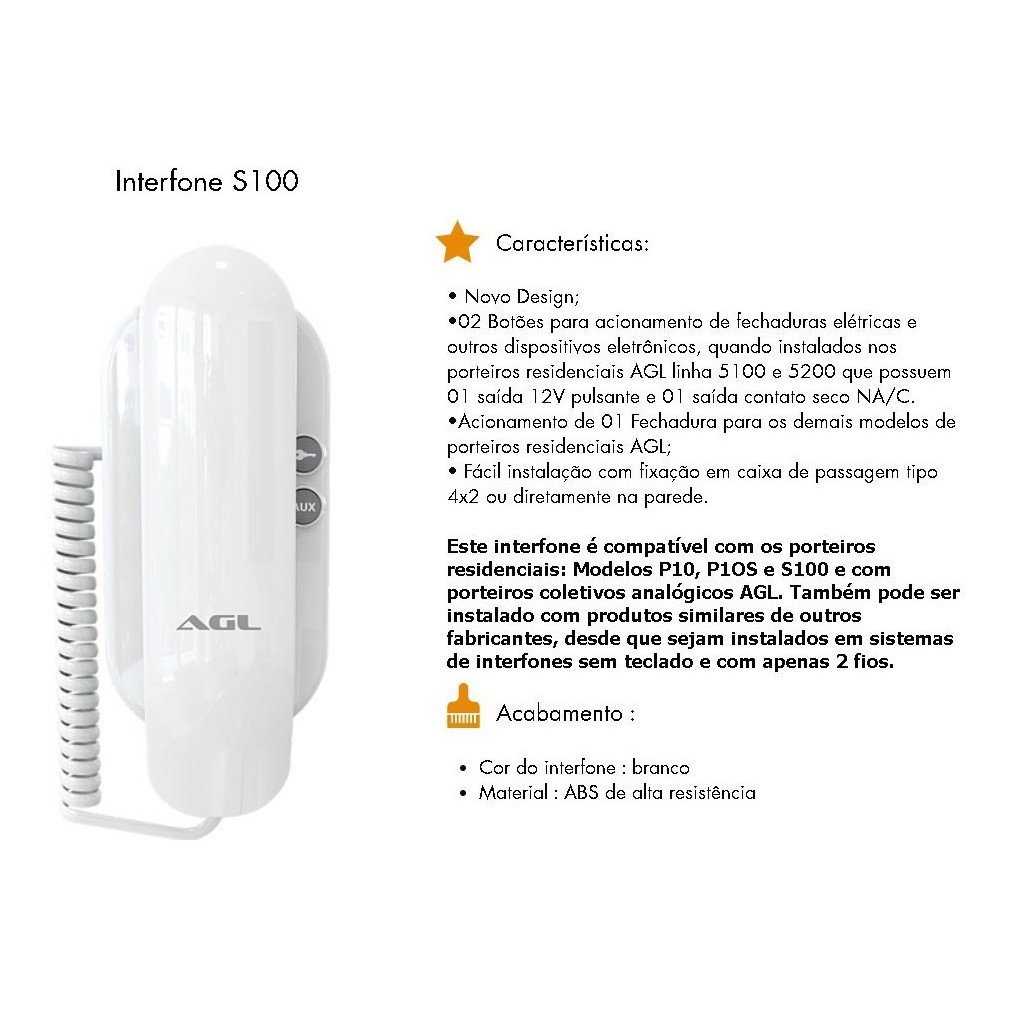 Interfone Monofone Extensão Universal Com 2 Botões AGL S100