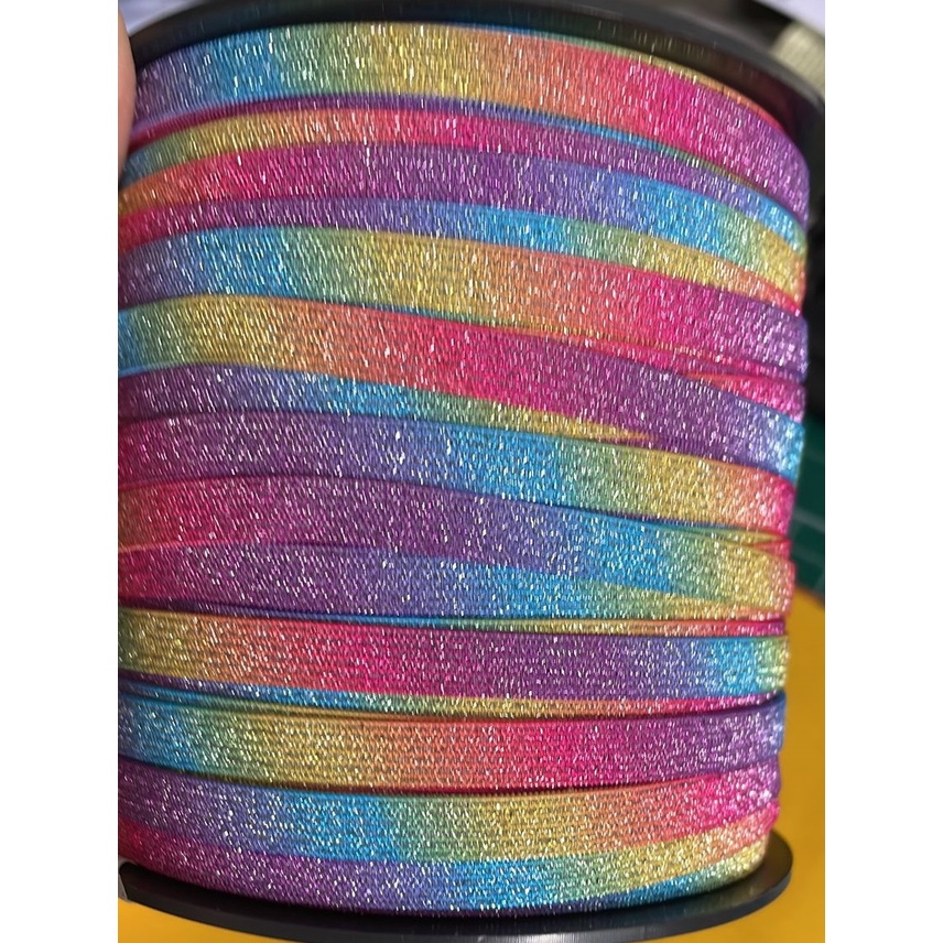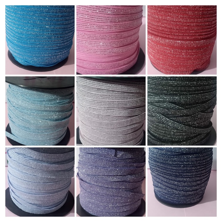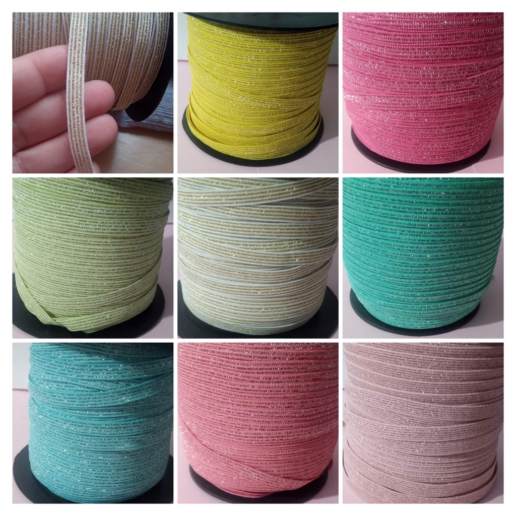 elástico chato 7mm colorido lurex com glitter vendido por metro 5 metros de elástico