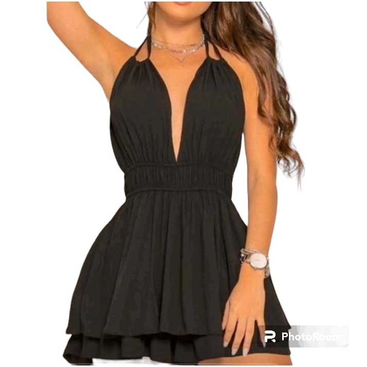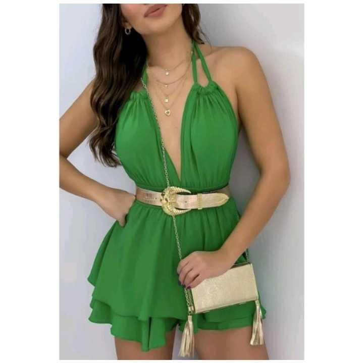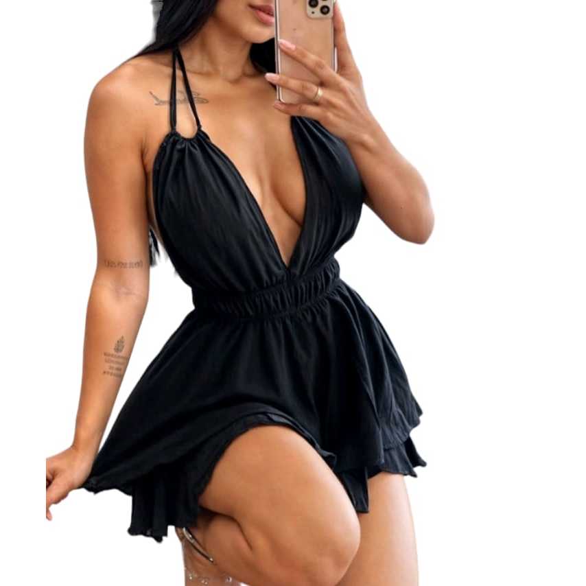 Macaquinho Decote V Feminino Viscolinho Frente Única Short