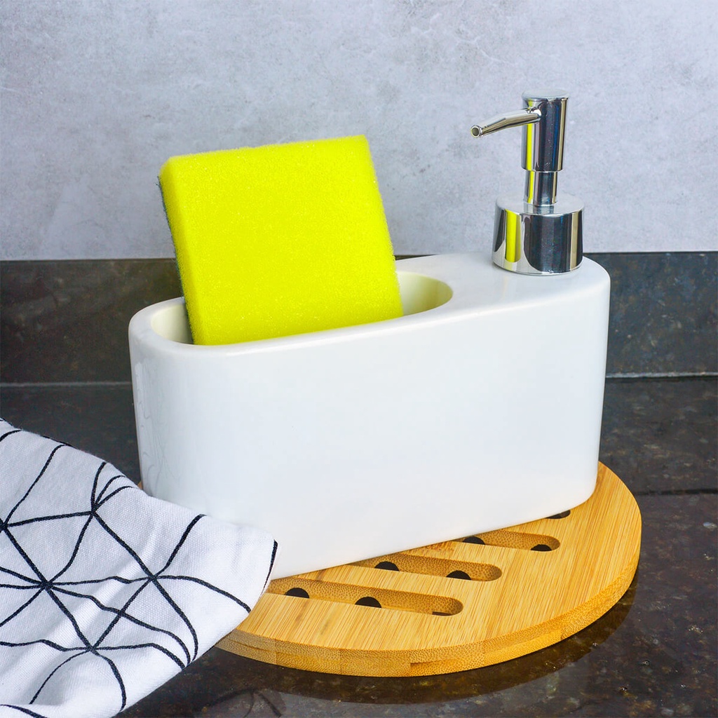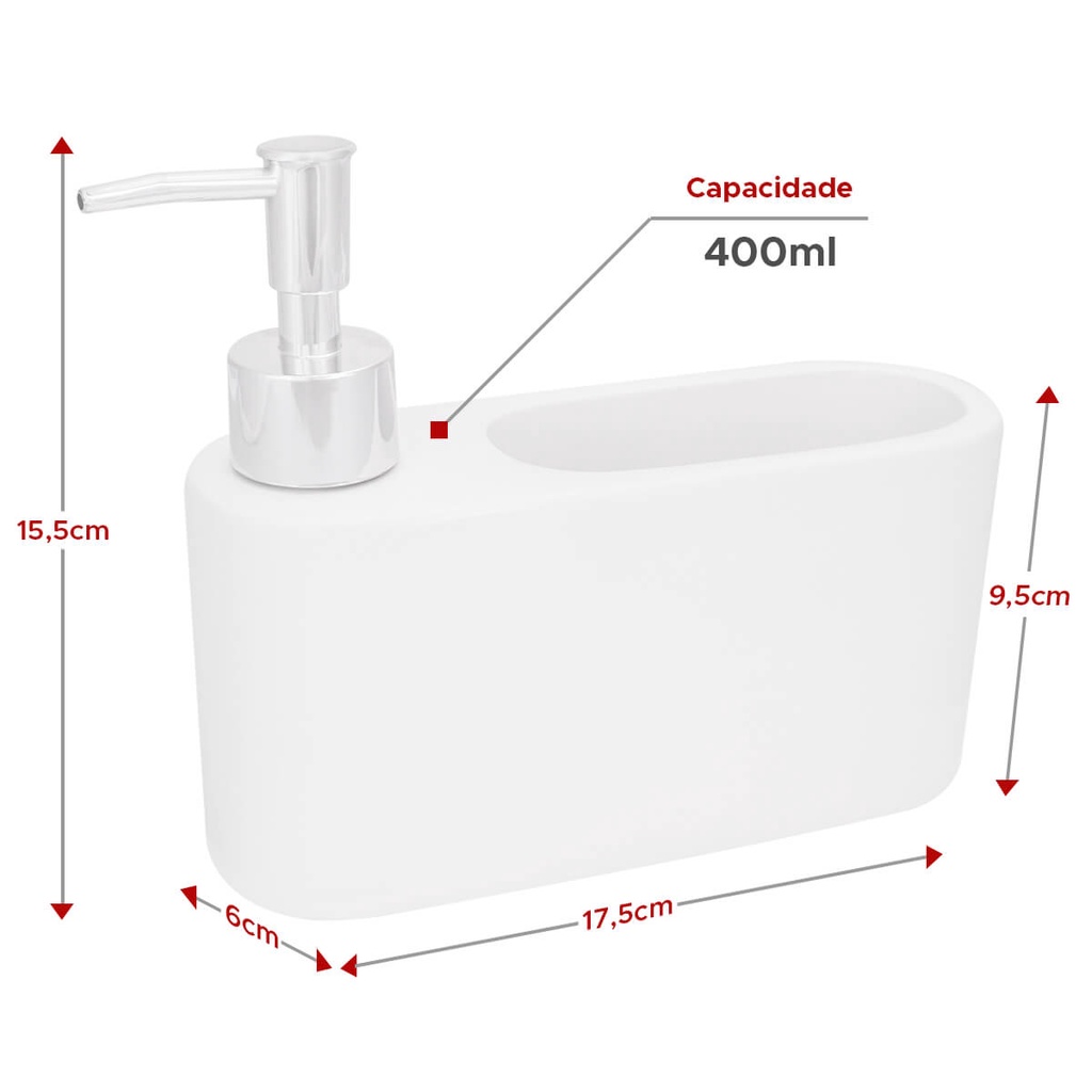 Porta Detergente de Cerâmica com Suporte para Esponja Branco