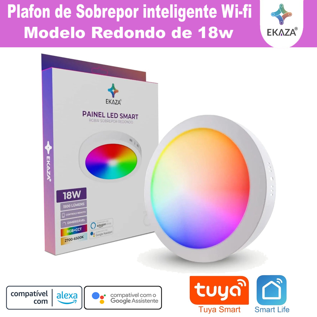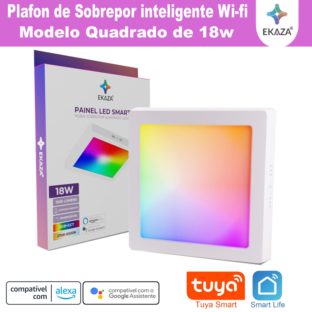 Plafon Painel Wifi de Sobrepor de 18w RGB+CCT Tuya Ekaza Compatível Alexa e Google Home