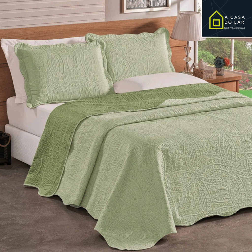 Kit Colcha Cobre Leito Com 2 Fronhas Casal Queen Dupla Face Estampada Matelado 2,40m x 2,60m