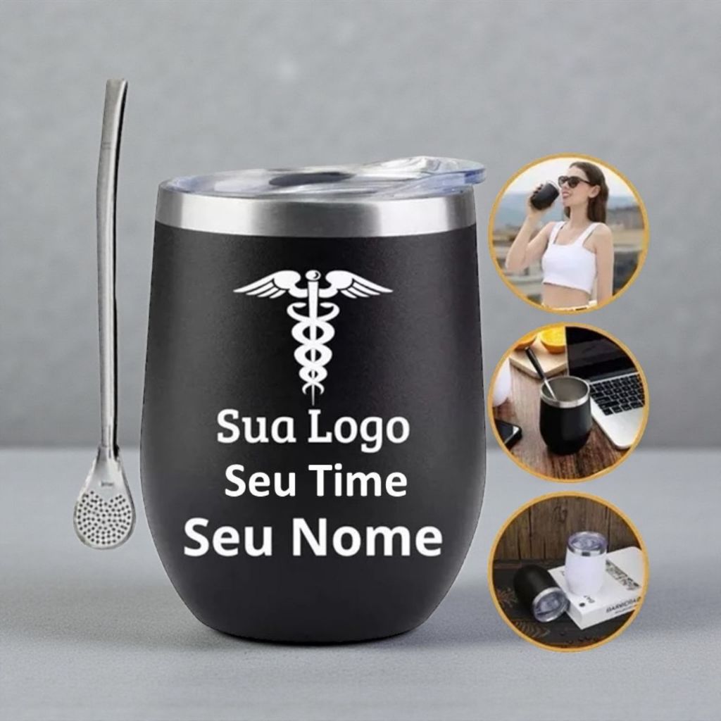 Kit Copo Cuia Térmico Personalizado Bomba Aço Tereré Chimarrão Tampa Encaixe Bebidas Gelado Quente