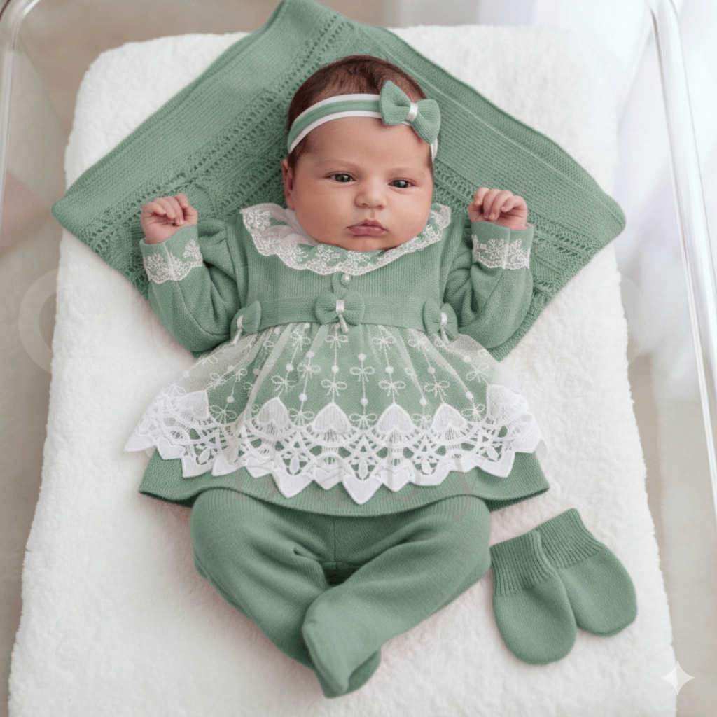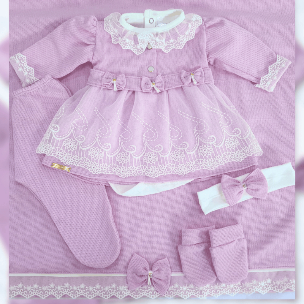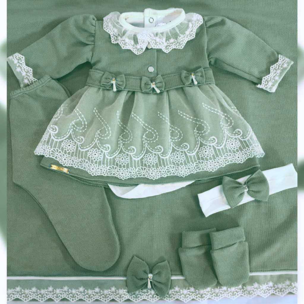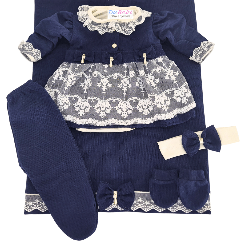 Saida Maternidade Menina Vestido Recem Nascido Princesa 6 Peças