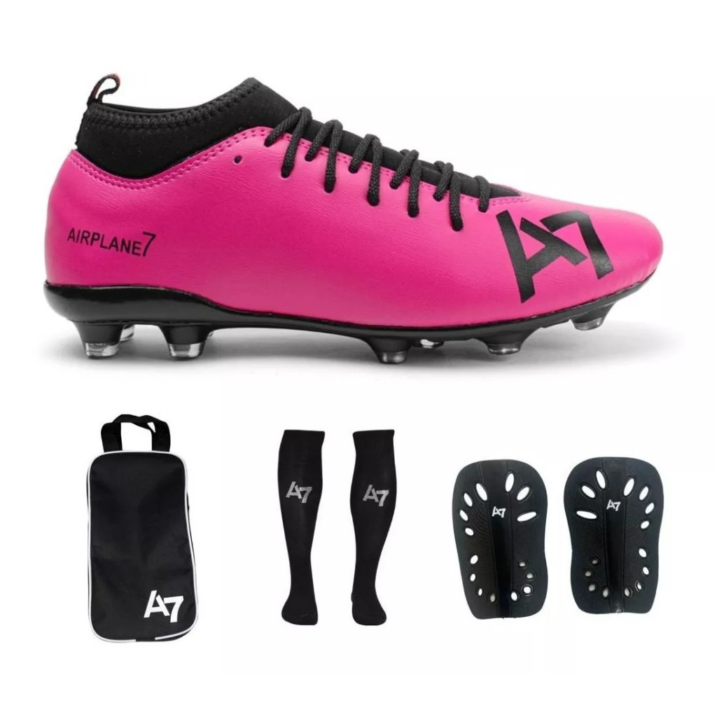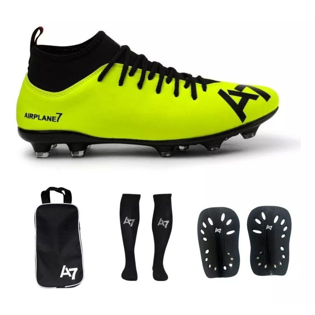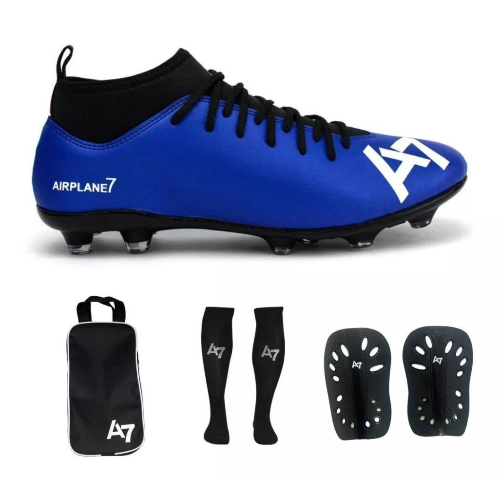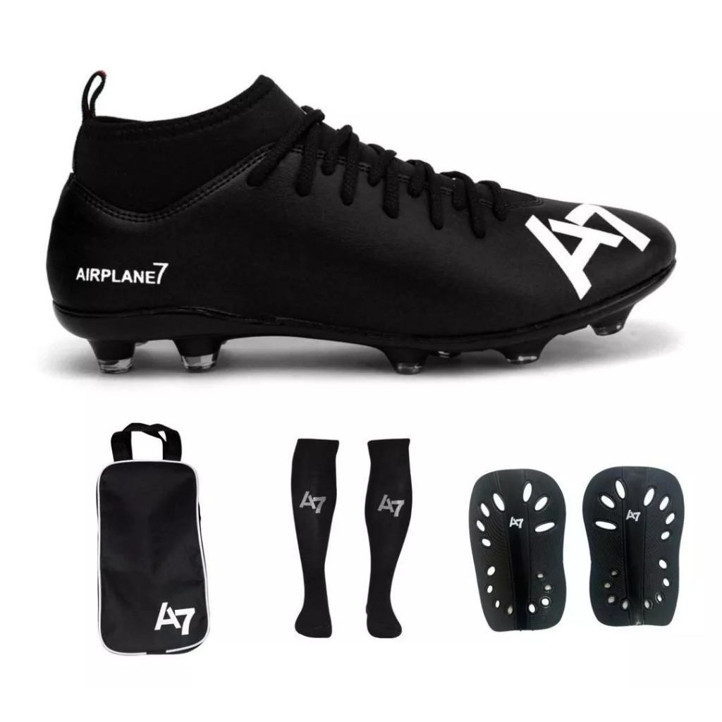 Chuteira Botinha De Campo A7 Com Trava + Porta Chuteira + Meião e Caneleira