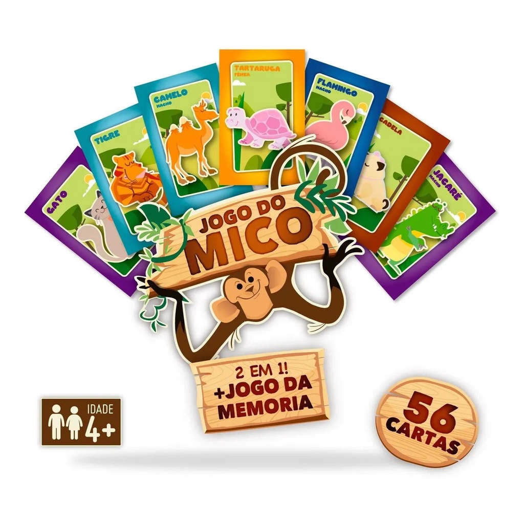 Jogo de Cartas do Mico + Jogo da Memoria - 2 em 1 - Pais & Filhos - Original Lacrado