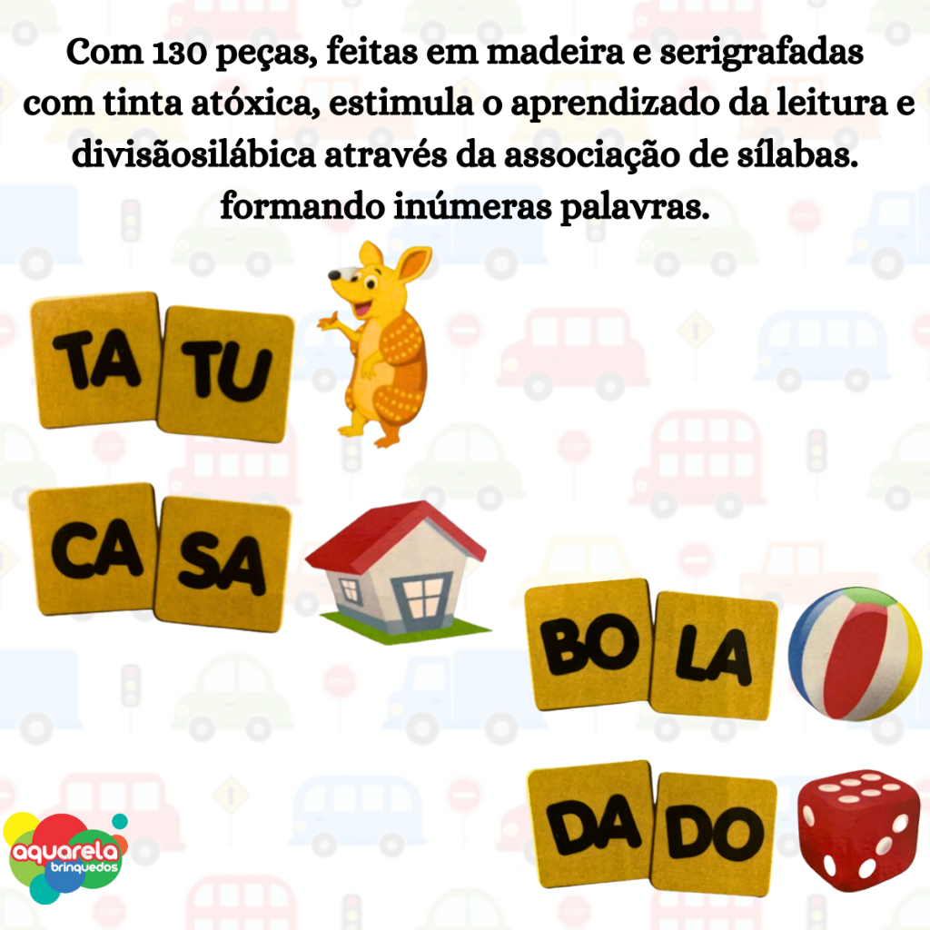 Jogo Brincando Com As Sílabas 130 Peças Em Madeira Mdf Aquarela Brinquedos