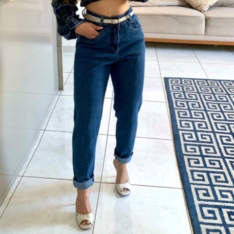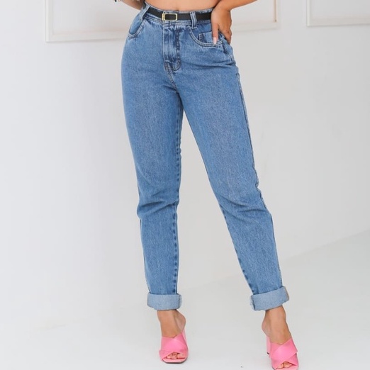 Calça Mom Jeans Feminina Luxo Cintura Alta Elegante