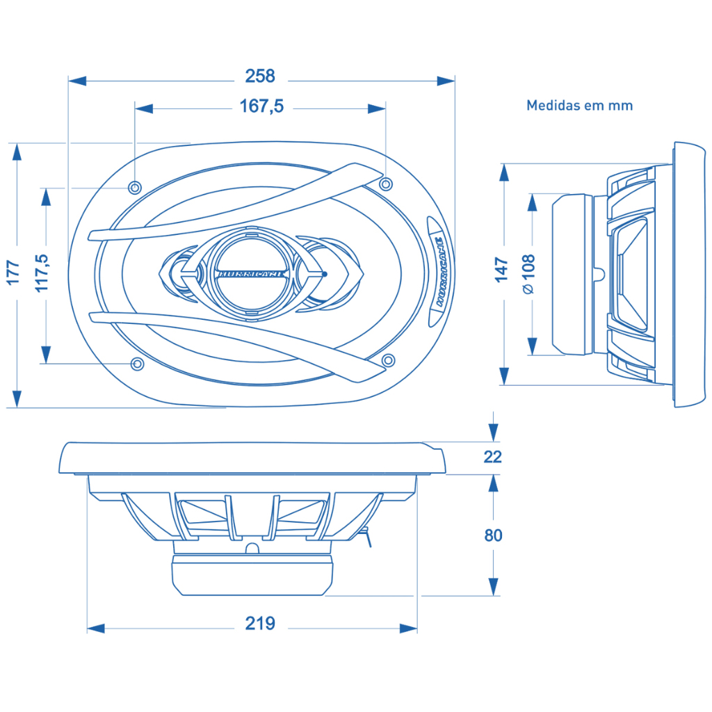 Alto Falante 6x9 Quadriaxial 180W Rms Par 4 Ohms Hurricane CM69 Quadriaxial