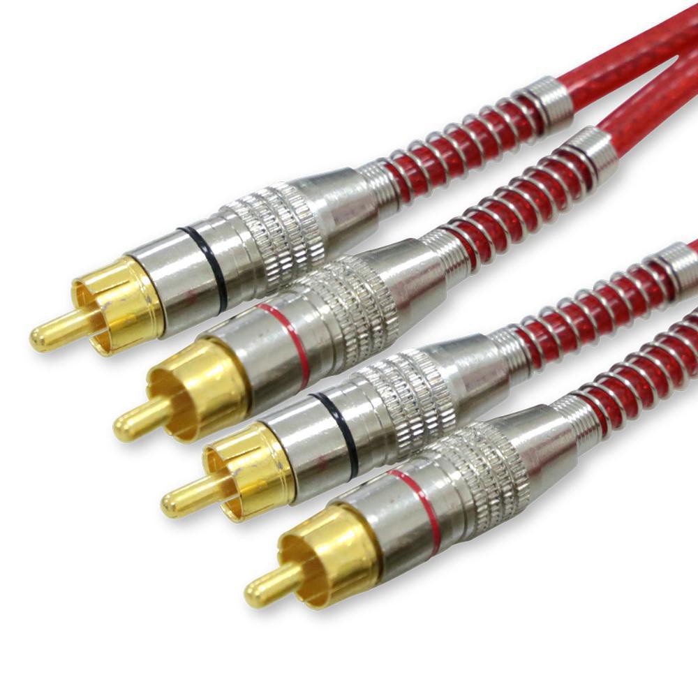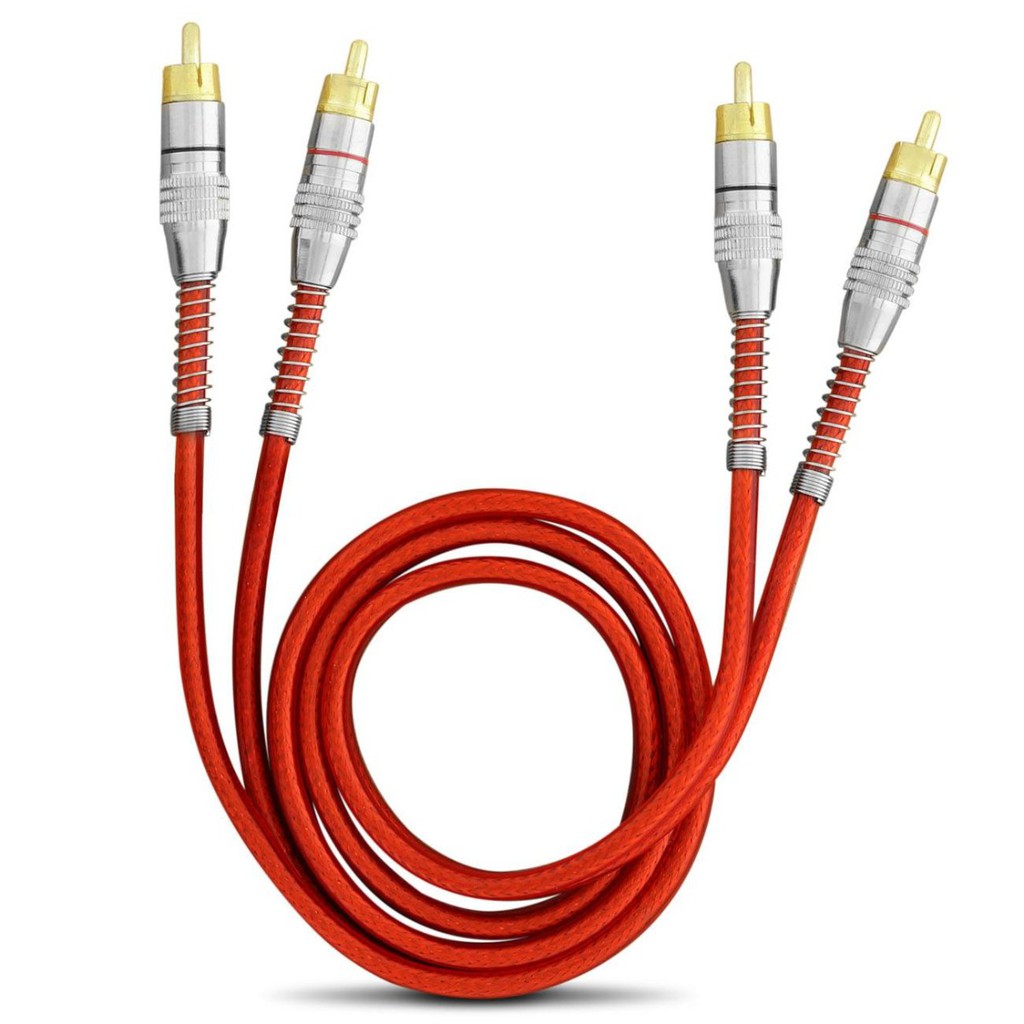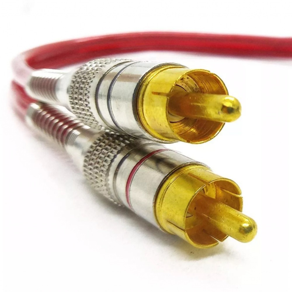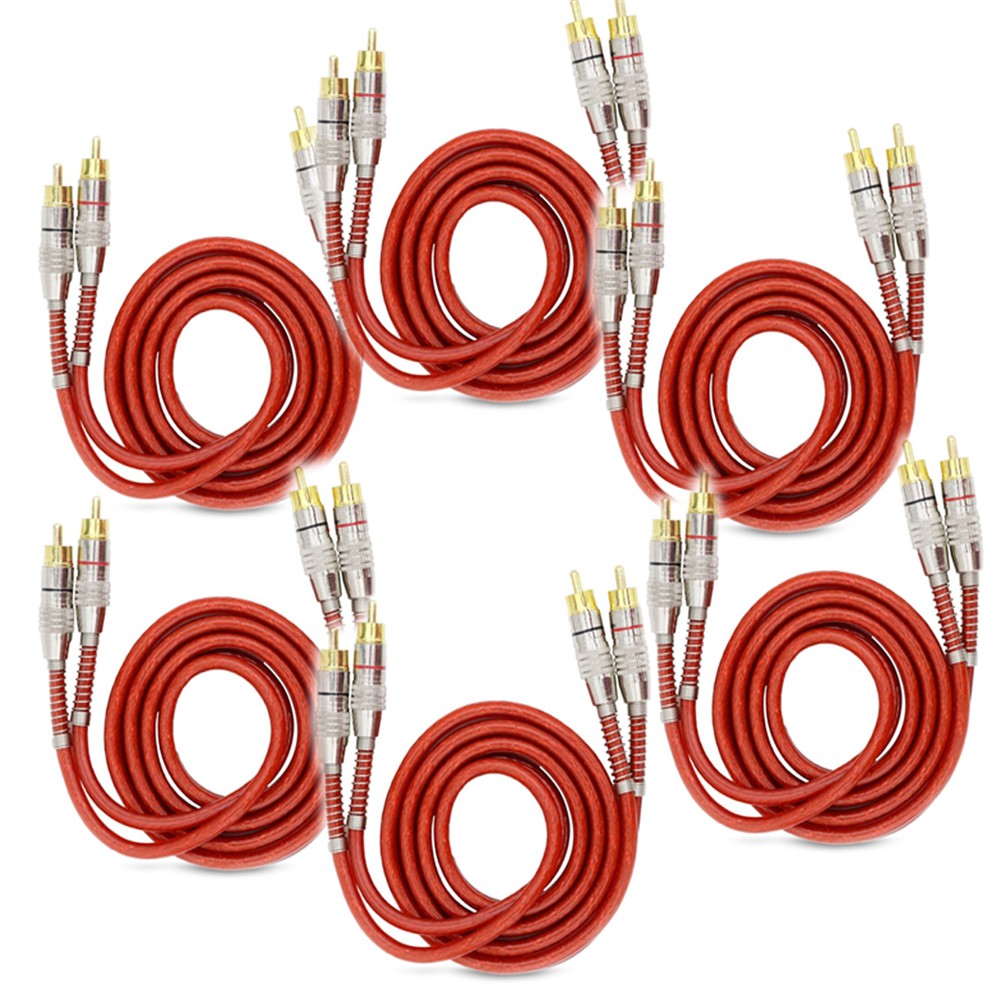 Kit 6 Cabos Rca 1 Metro Blindado Dupla Blindagem Tech One Svart Vermelho 1m Som Automotivo