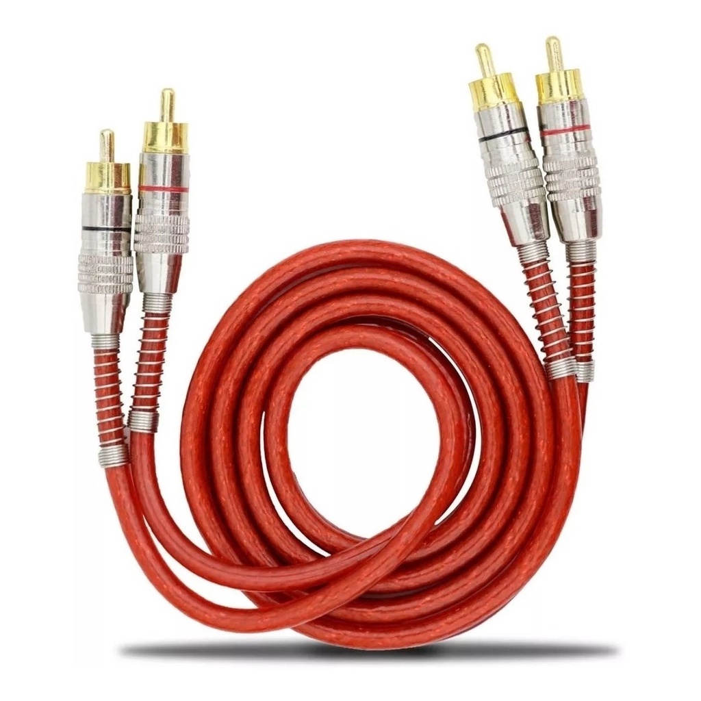 Kit 2 Cabos Rca De 1 Metro Blindado Tech One Svart Vermelho Conector Ouro Som Automotivo