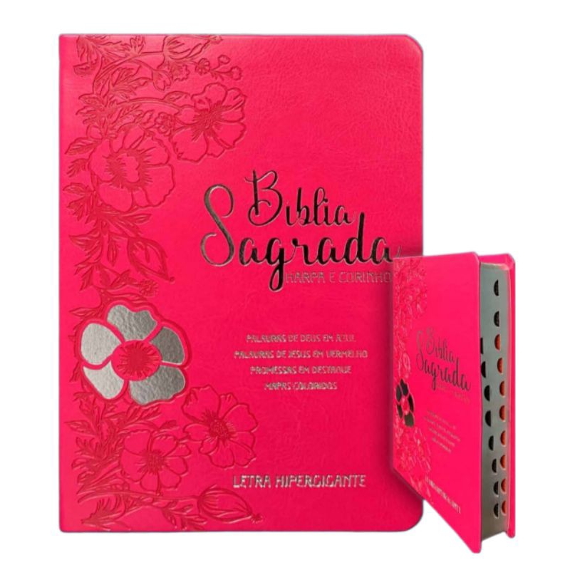 Bíblia com harpa floral Dália Pink - letra hipergigante