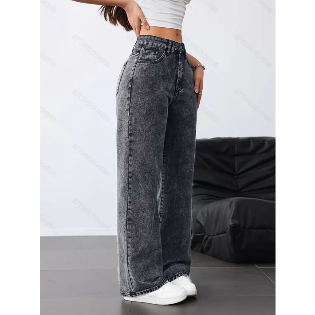 Calça Jeans feminina Wide Leg Marmorizada Pantalona boca larga - cintura alta premium