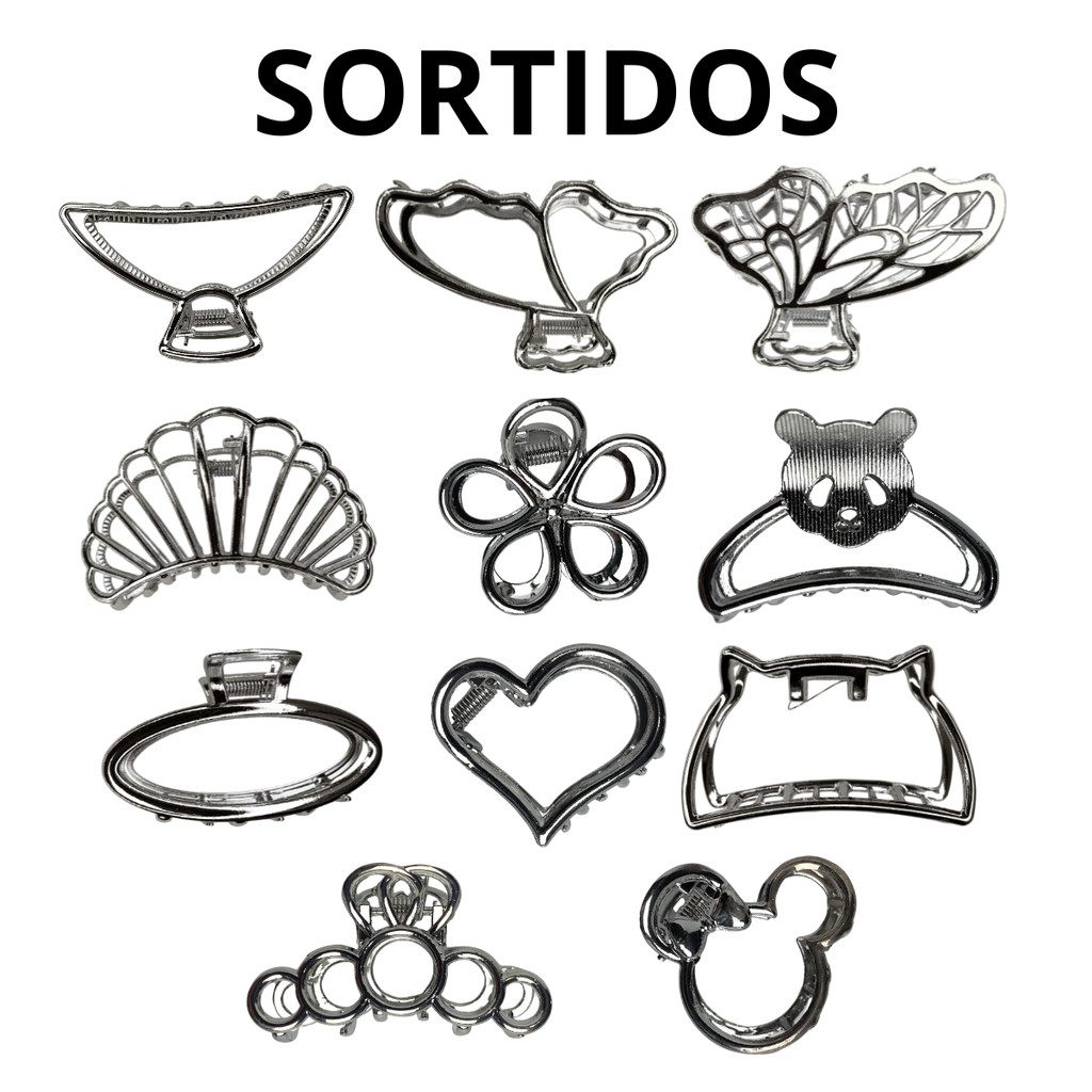 Presilha Prendedor de Cabelo Pequeno PRATA Abstrato de Metal Resistente Sortida