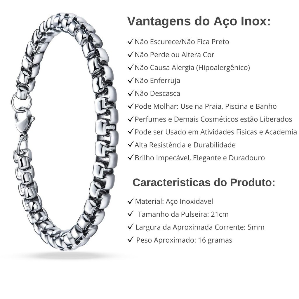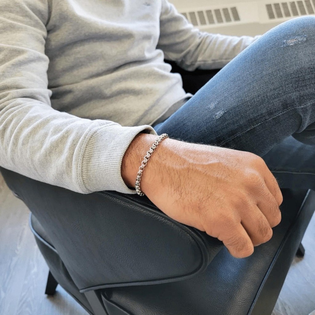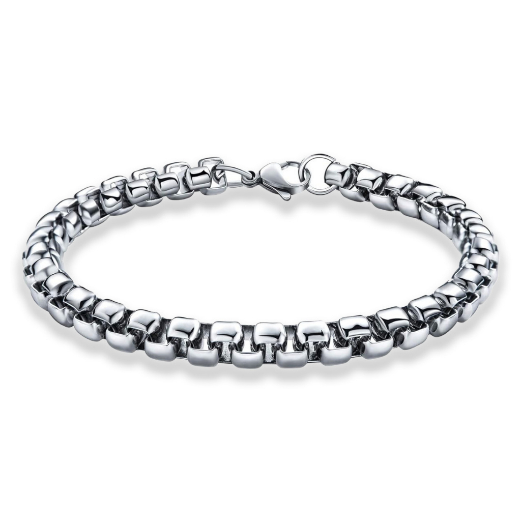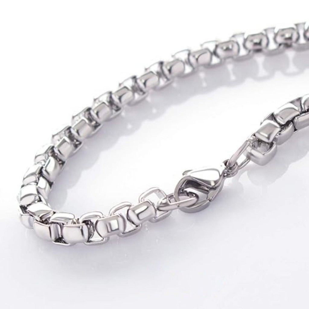 Pulseira Masculina de Aço Inoxidável de Corrente Veneziana cor Prata