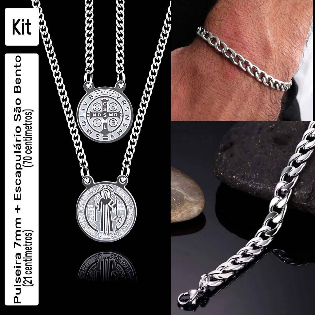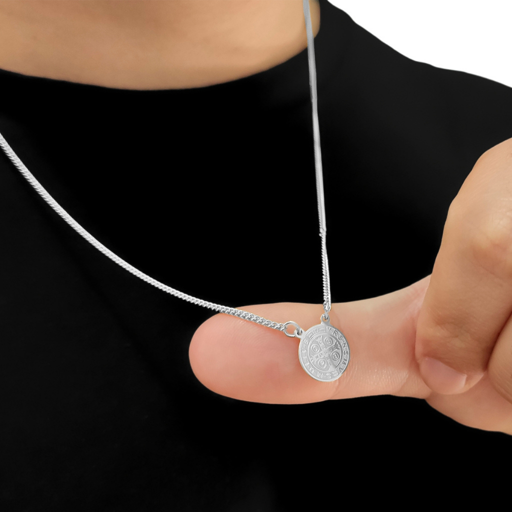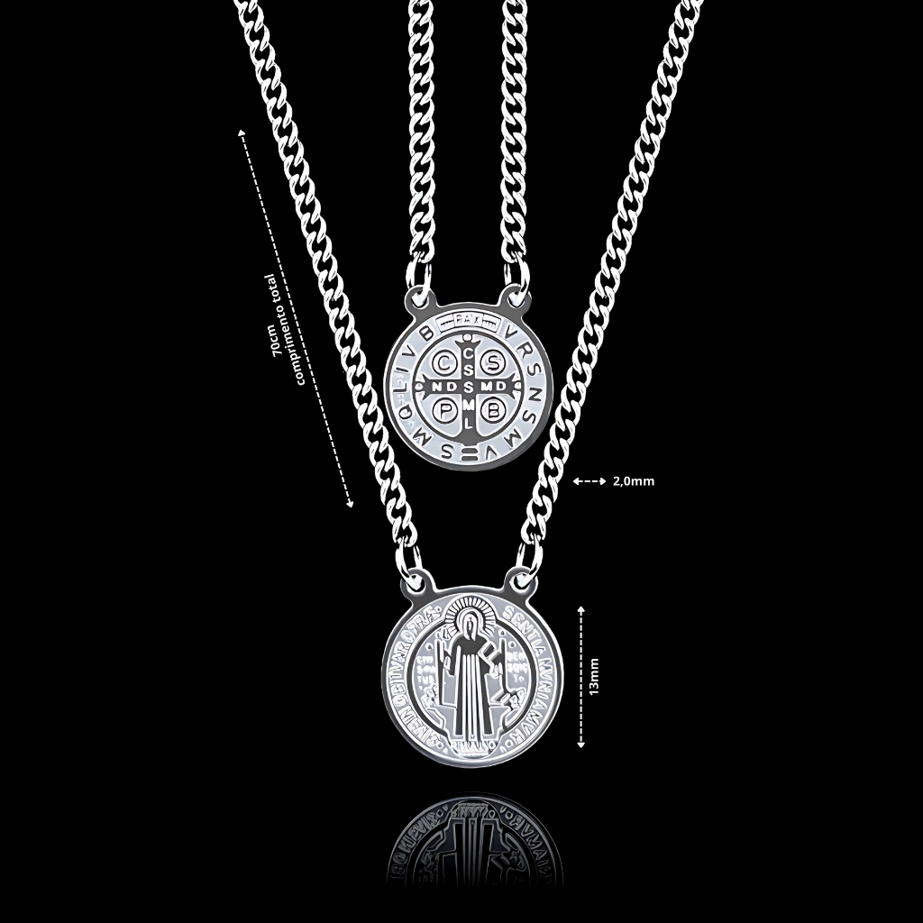 Correntinha Escapulário Aço Inox 316L Prata São Bento Masculina Feminino