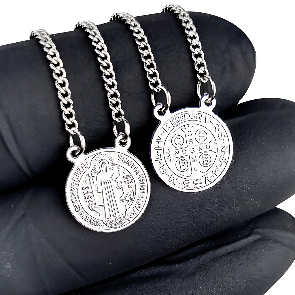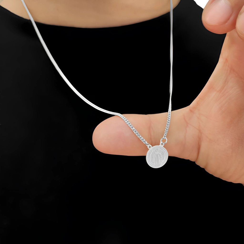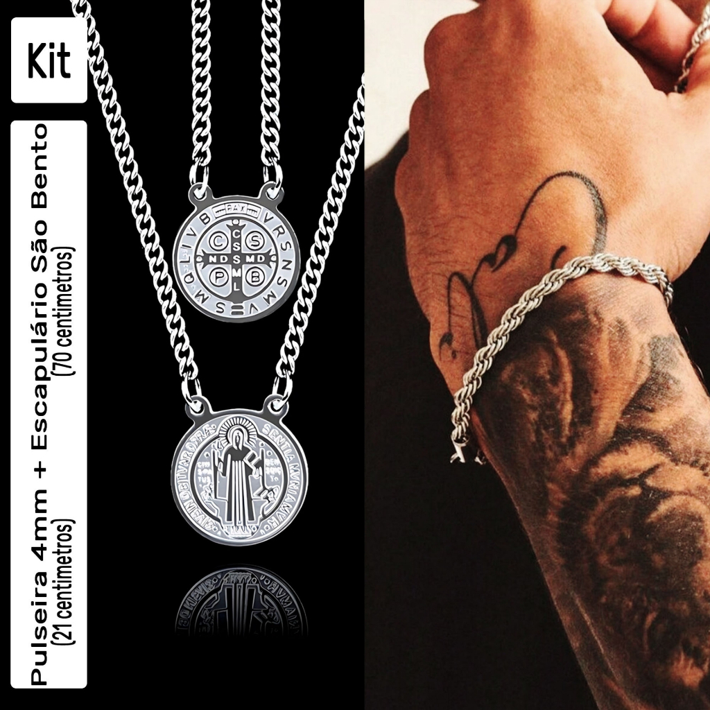 Correntinha Escapulário Aço Inox 316L Prata São Bento Masculina Feminino
