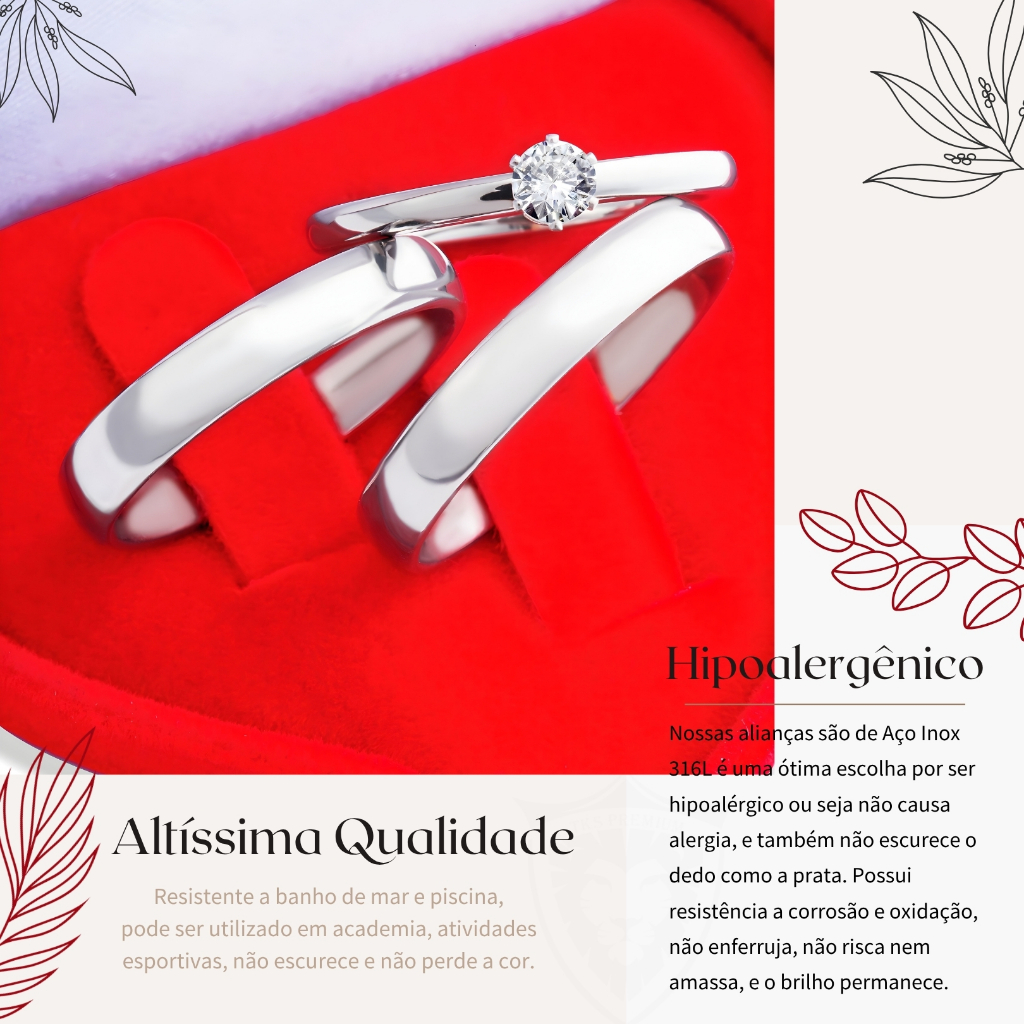 Par De Alianças de Namoro Prata Tradicional 4mm Anéis de Compromisso Envio Imediato Compromisso