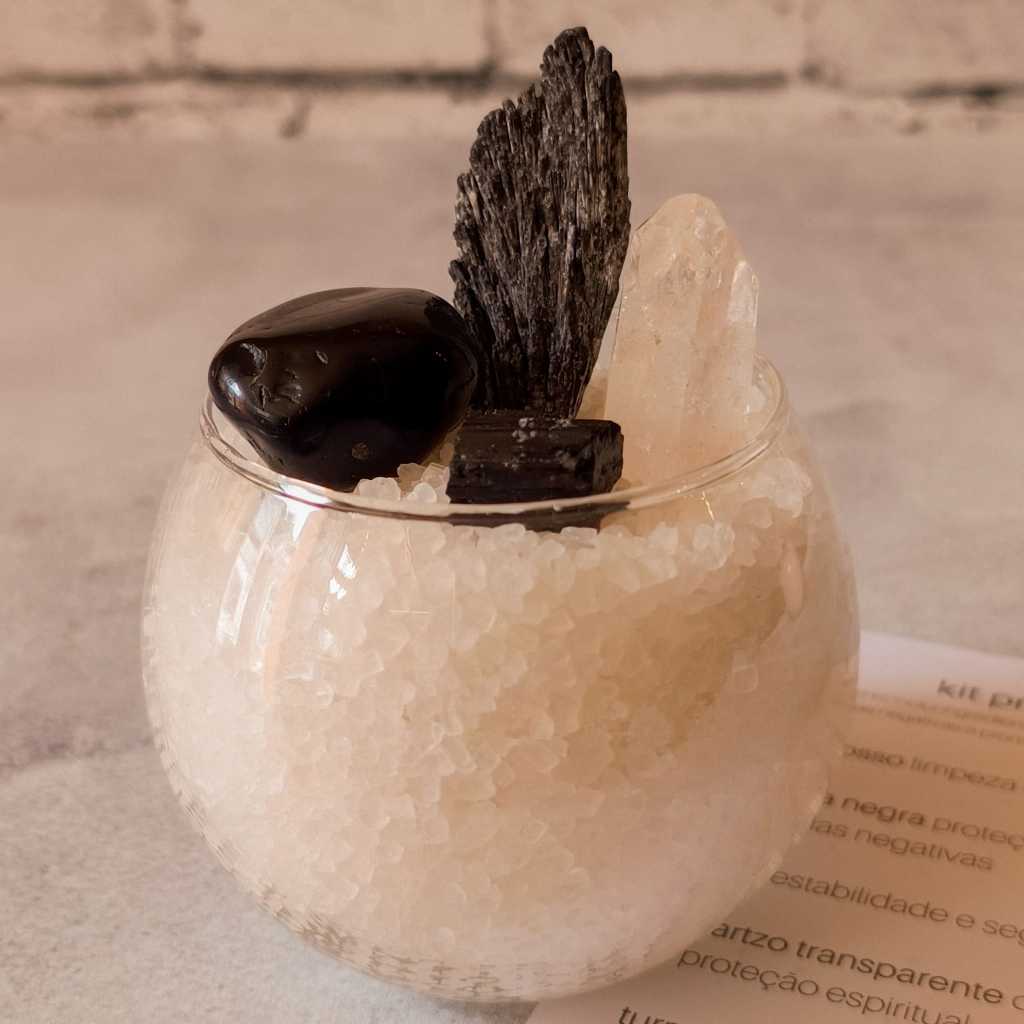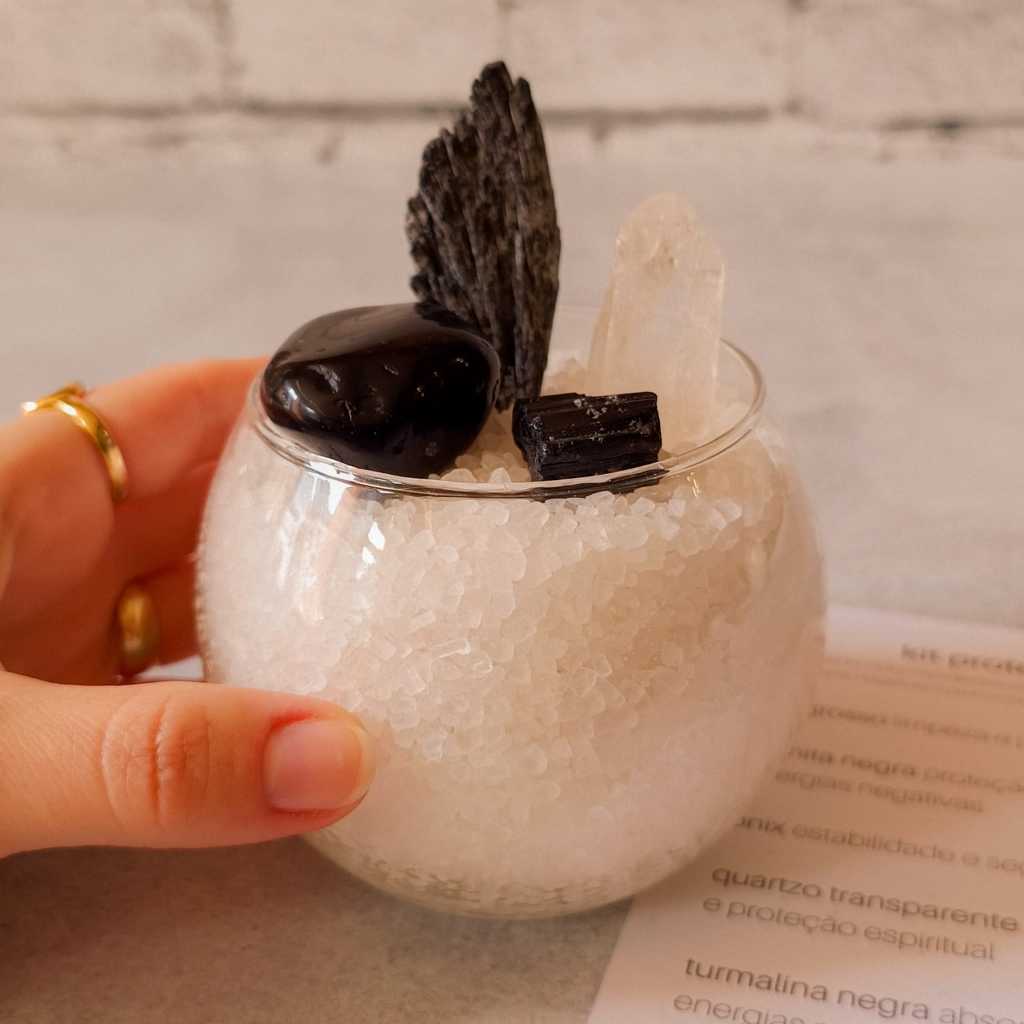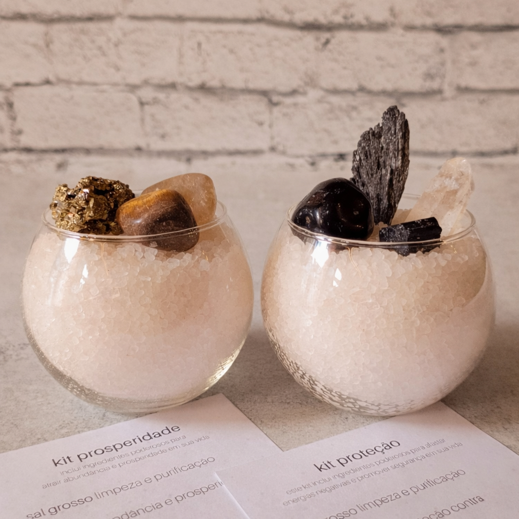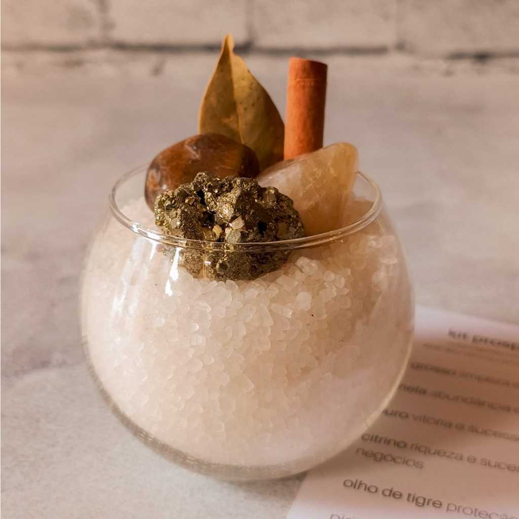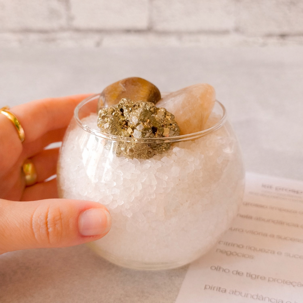 Kit Taça de Sal Grosso e Cristais Para Prosperidade ou Proteção