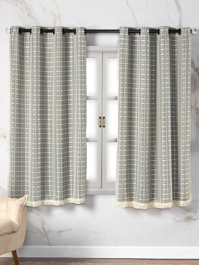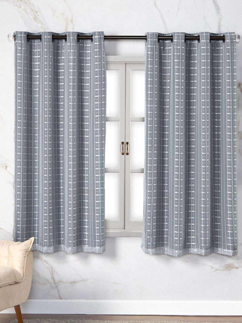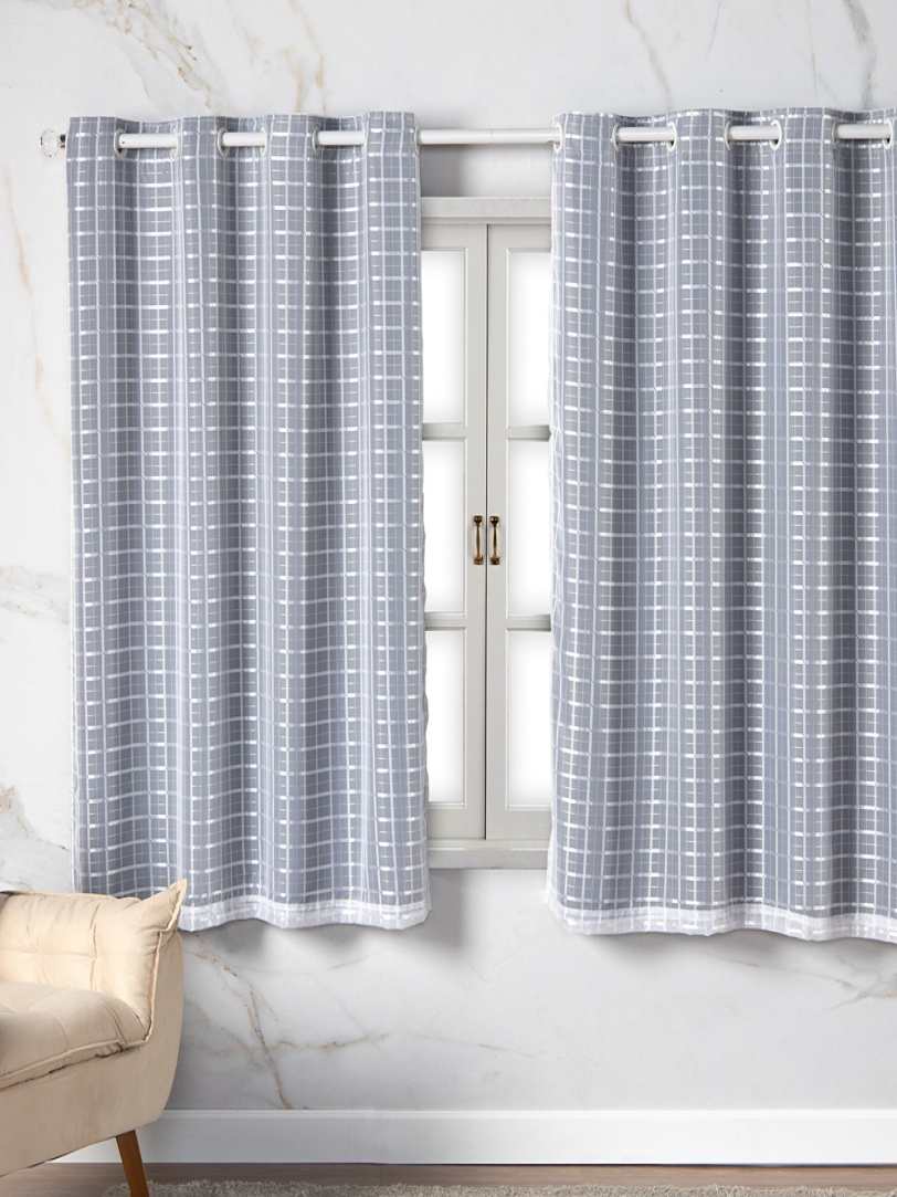 Cortina Com Blackout Prata 2,80m x 1,60m Sala Quarto Janela Voil Xadrez Varias Cores Veda Luz