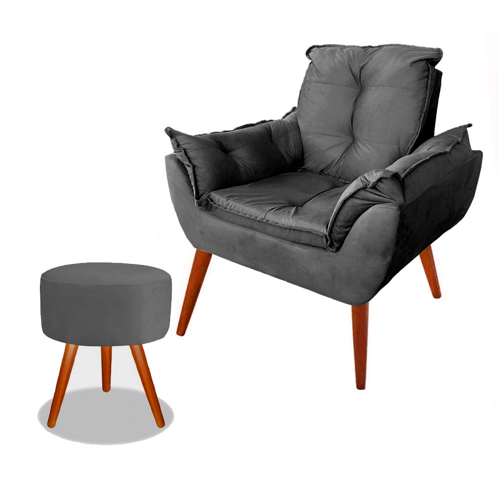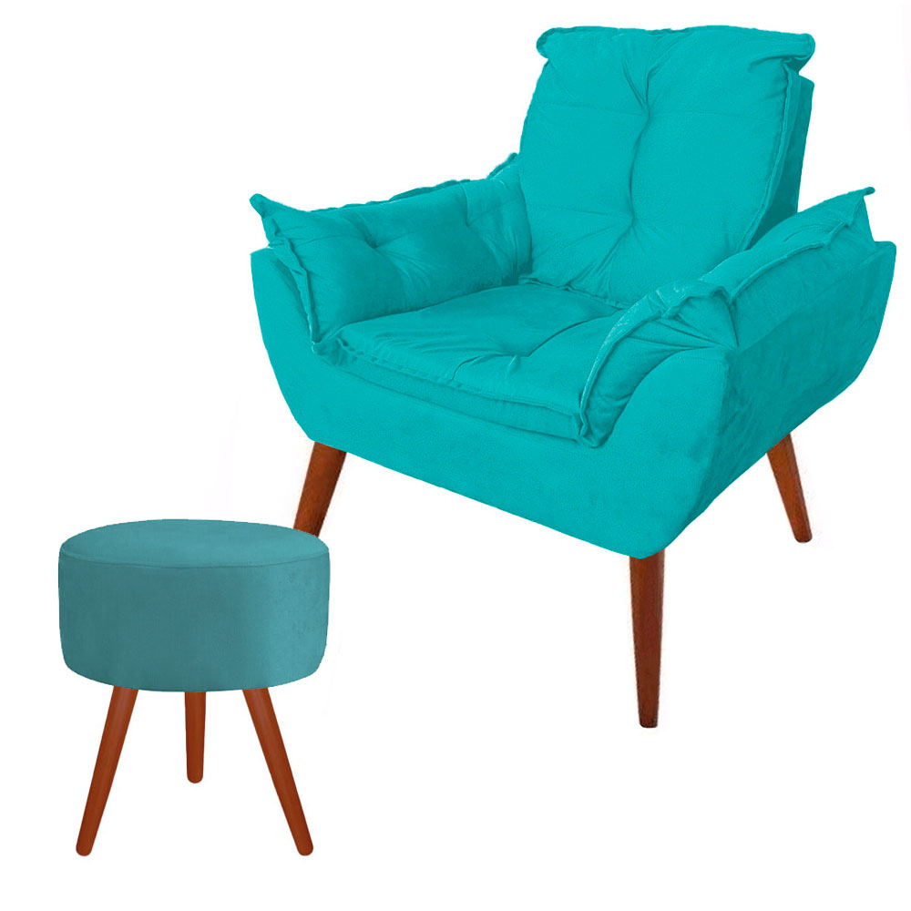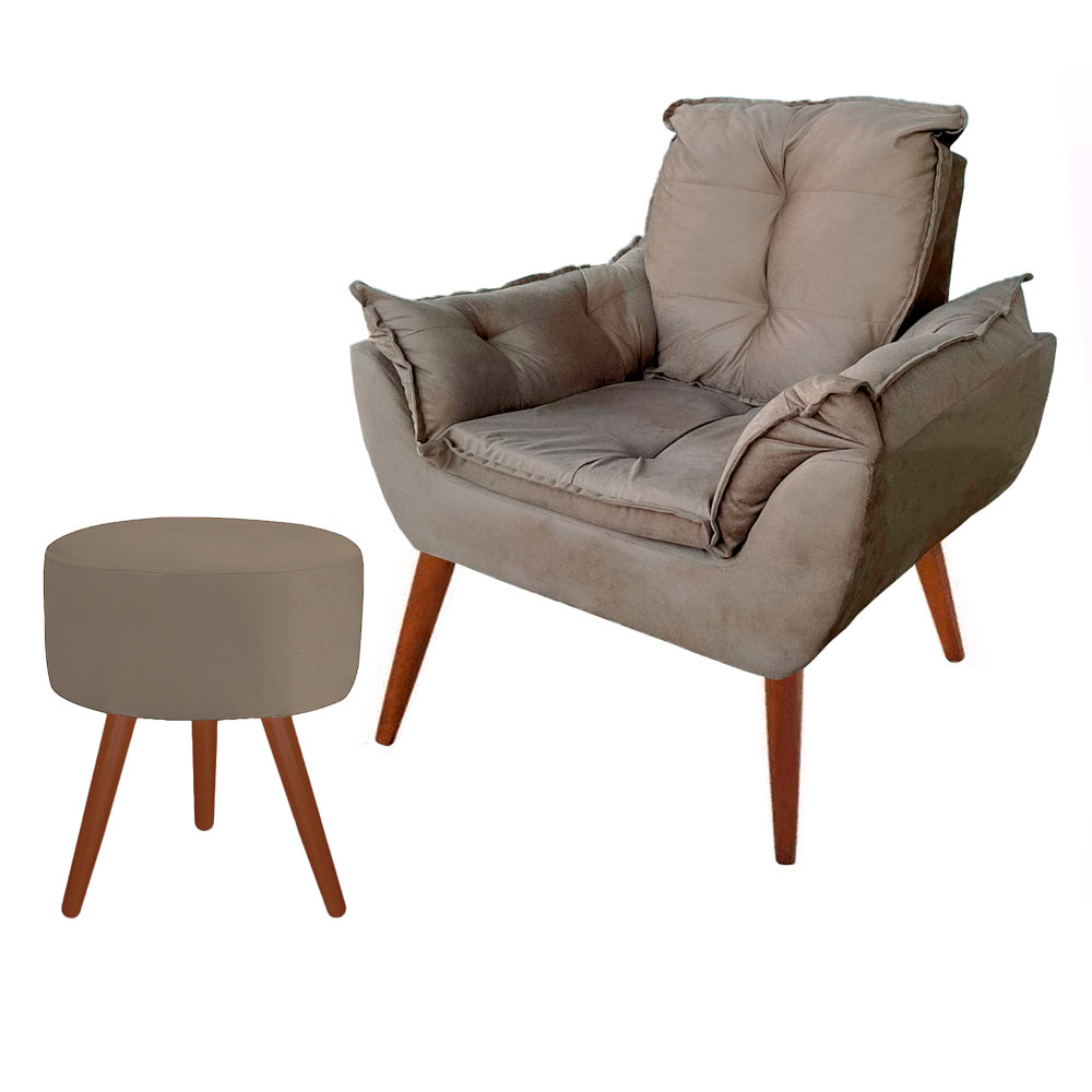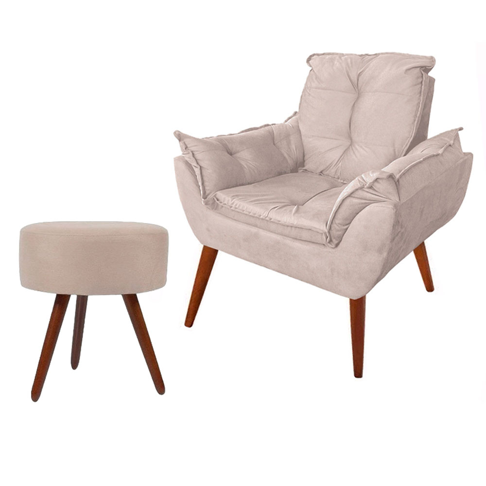 Poltrona Opala Decorativa Pés Palito Com Puff Pés Palito
